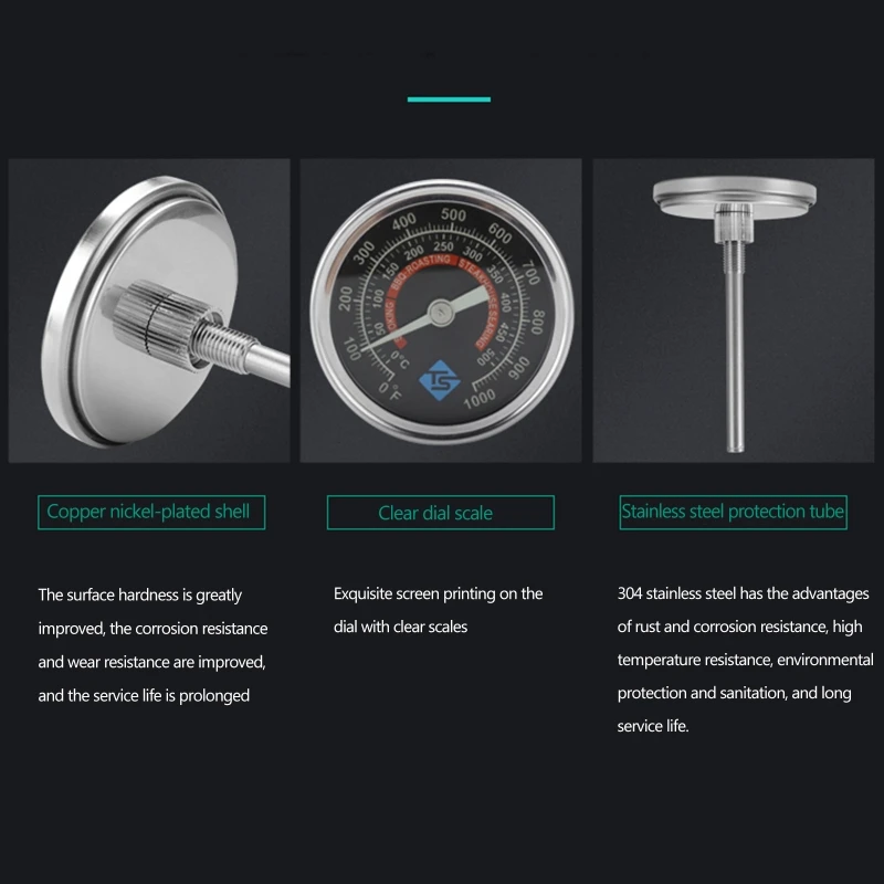 0-1000 Thermometer (500 ) барбекю гриль коса ямы курильщик термометр для угля жаровня крышка крышки аналоговый датчик температуры с ночным свечением