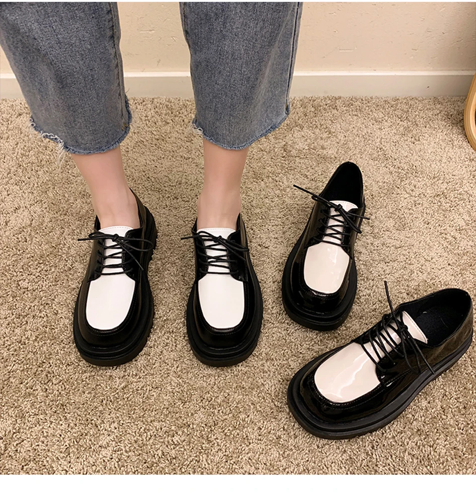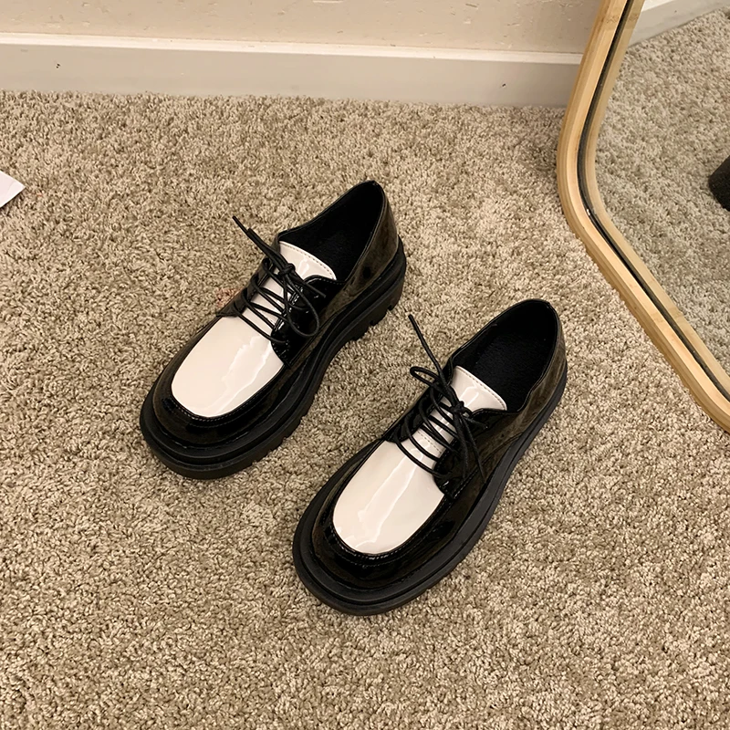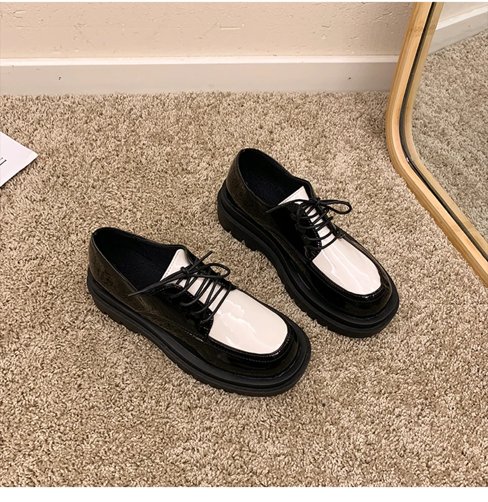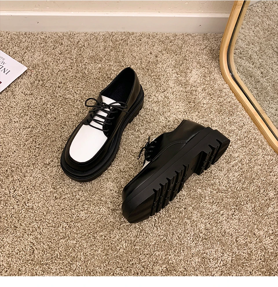 Женские туфли-оксфорды EOFK, черные однотонные туфли из искусственной кожи, на шнуровке, на высоком каблуке и толстой платформе, повседневные лоферы на осень
