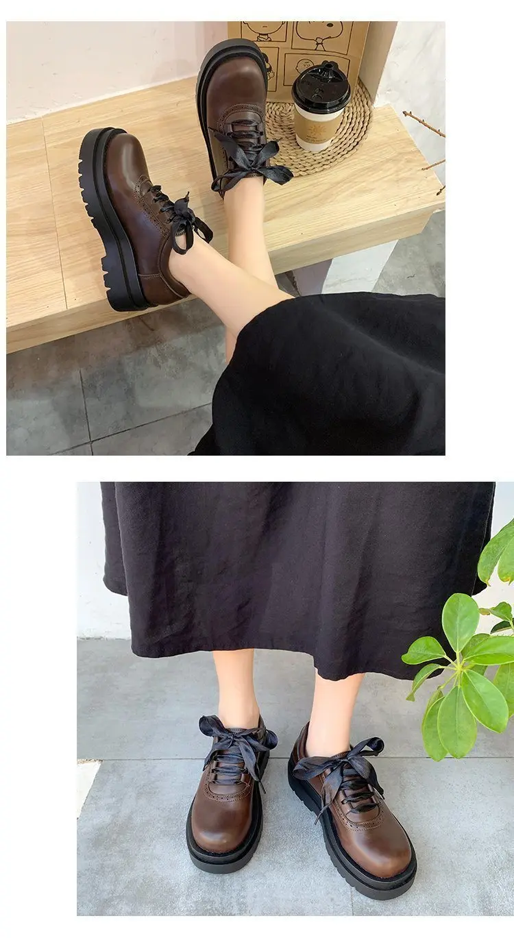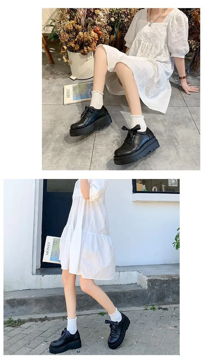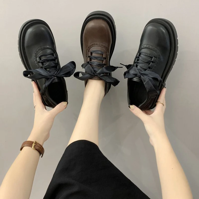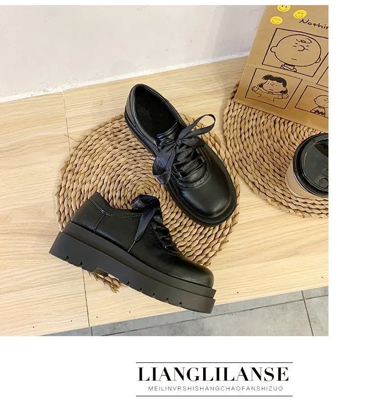 Женские туфли-оксфорды EOFK, черные однотонные туфли из искусственной кожи, на шнуровке, на высоком каблуке и толстой платформе, повседневные лоферы на осень