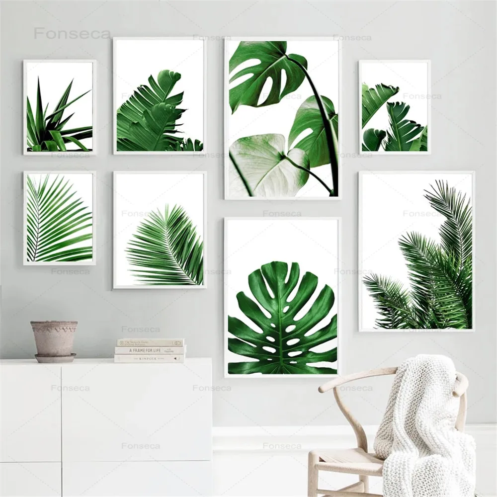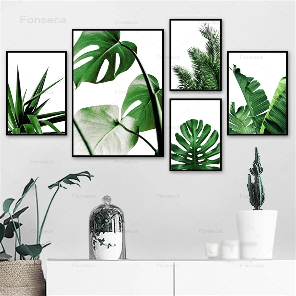 Свежие зеленые монстеры, алоэ, Пальмовые Листья, настенная Картина на холсте, тропические скандинавские постеры и принты, настенные картины для гостиной