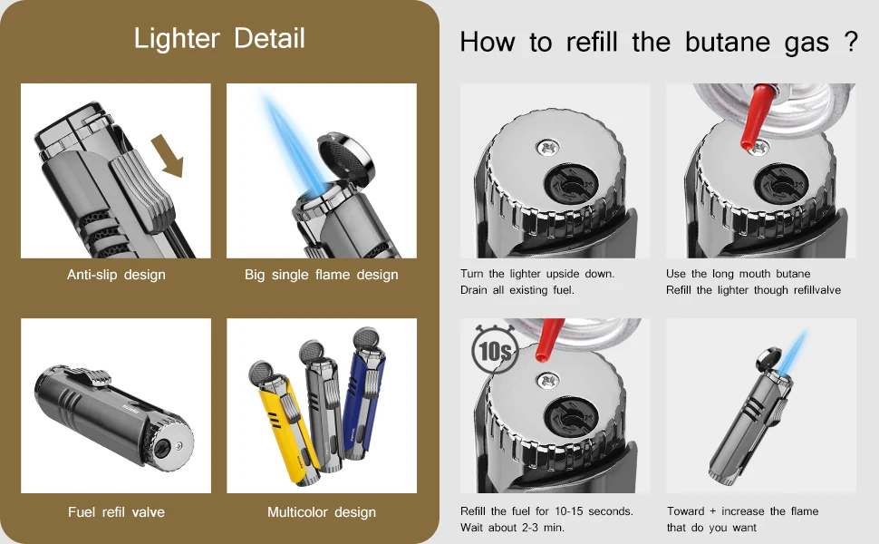 Модная Высококачественная ветрозащитная зажигалка, зажигалка с одним пламенем, многоразовая надувная зажигалка с дыроколом для сигар