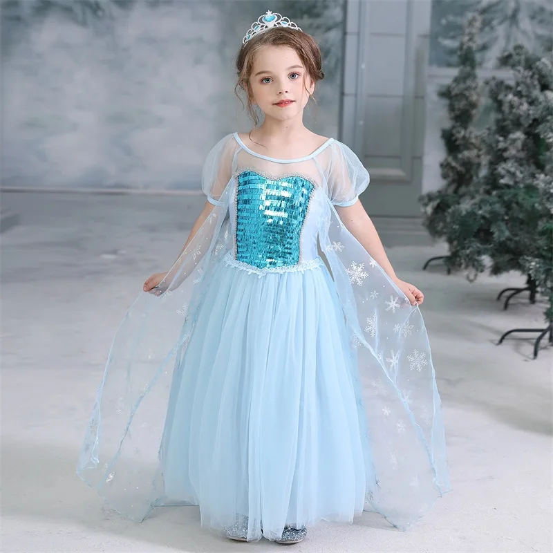 Детское платье с блестками и принтом снежинок, на Возраст 4-10 лет