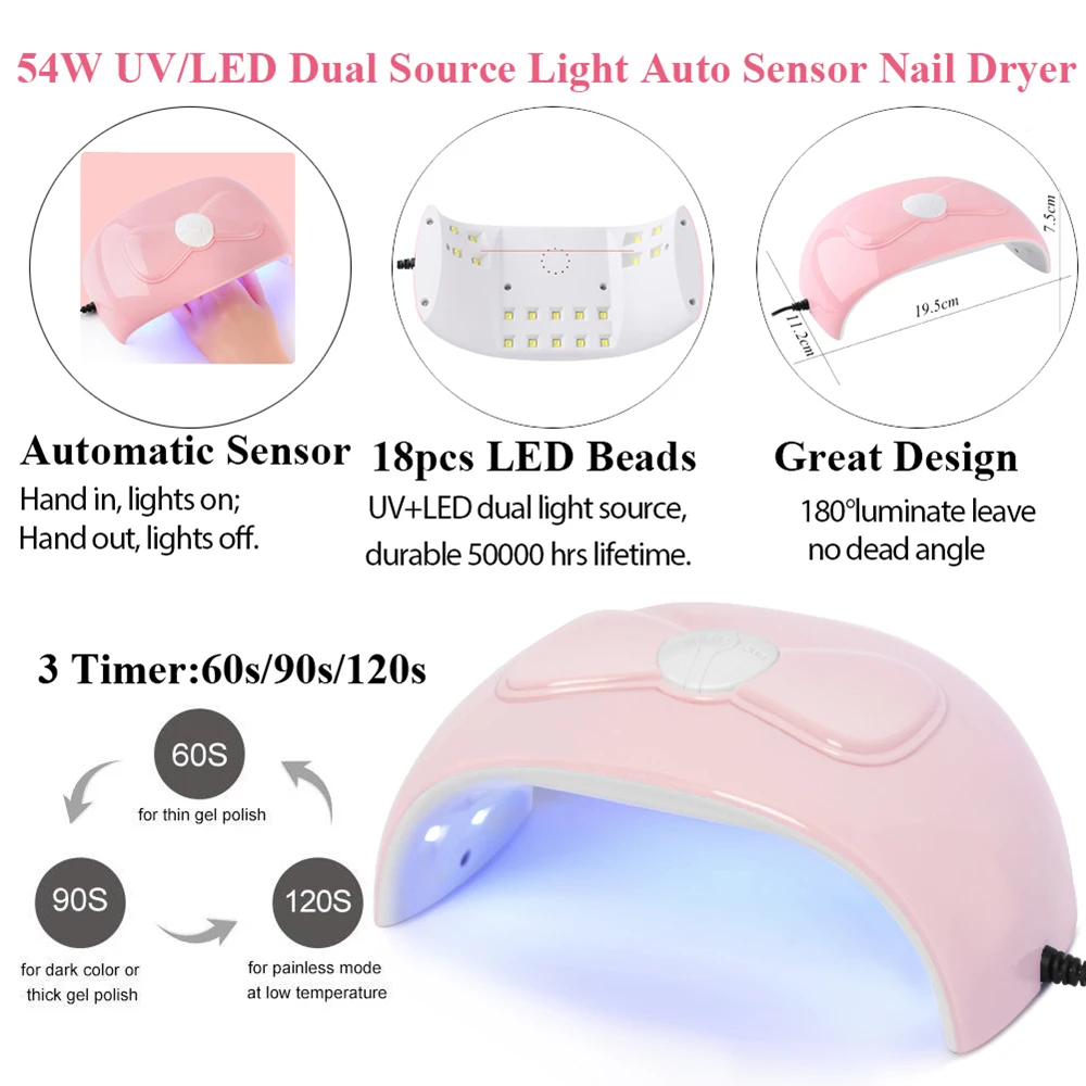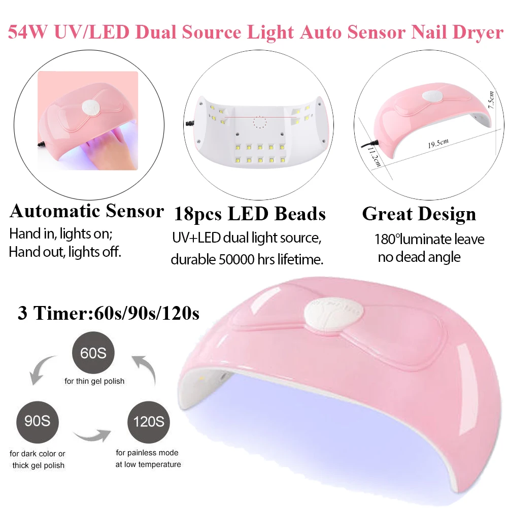 Полный набор для полировки ногтей для маникюра, УФ светодиодный ная лампа, 20 цветов гель-лаков, верхнее и Базовое покрытие, набор инструментов для маникюра