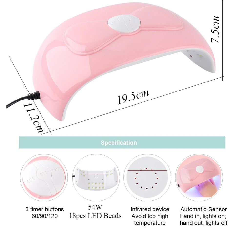 3.【 3 Таймер 】гибкие варианты сушки с 4 настройками таймера: 60 с/90 с/120 с режим низкого нагрева, наслаждайтесь профессиональным отверждением ногтей, идеальный выбор как для салона, так и для дома.