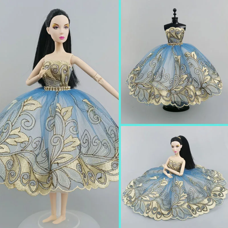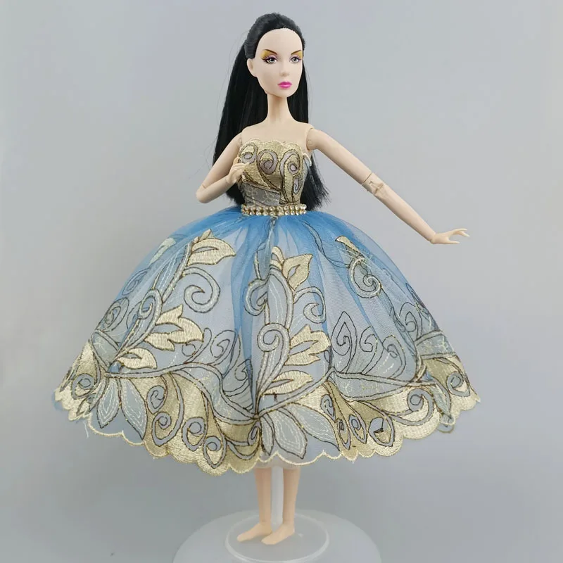 Цвета: голубой, золотистый, балетное платье-пачка платье для куклы Барби одежды 16 мягкого плюша; Аксессуары для куклы Стразы 3-х слойная юбка Бальные платья Вечерние платья игрушка