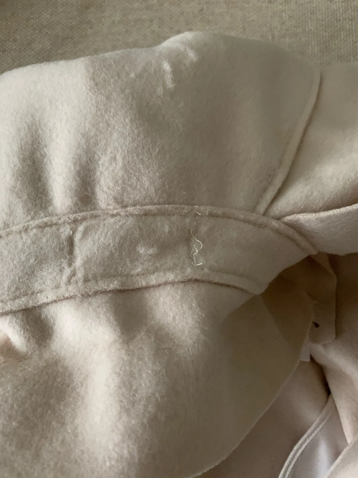 Очень не заметно было то, что рукава, них пальто просто срез ткани без обработки. Посмотрите внимательно видео, на видео видно, если знать, куда смотреть :). Мне также не подошла сама ткань, очень мягкая, я бы хотела поплотенее. Сделала бесплатный возврат, средства вернули, спасибо.