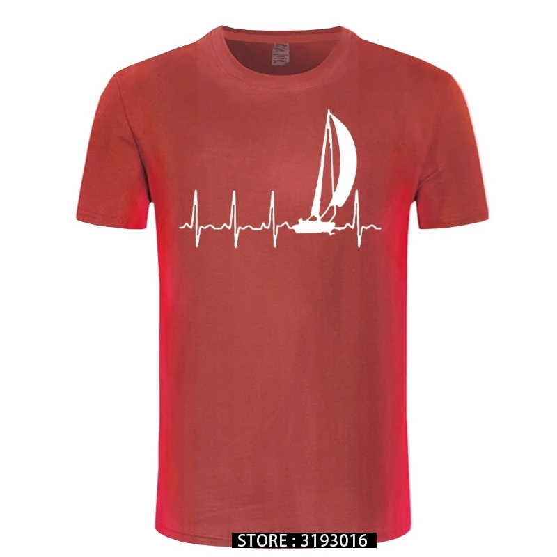 Футболка с рисунком парусника, летняя футболка с рисунком сердцебиения, симпатичная Мужская футболка из 100 хлопка с коротким рукавом