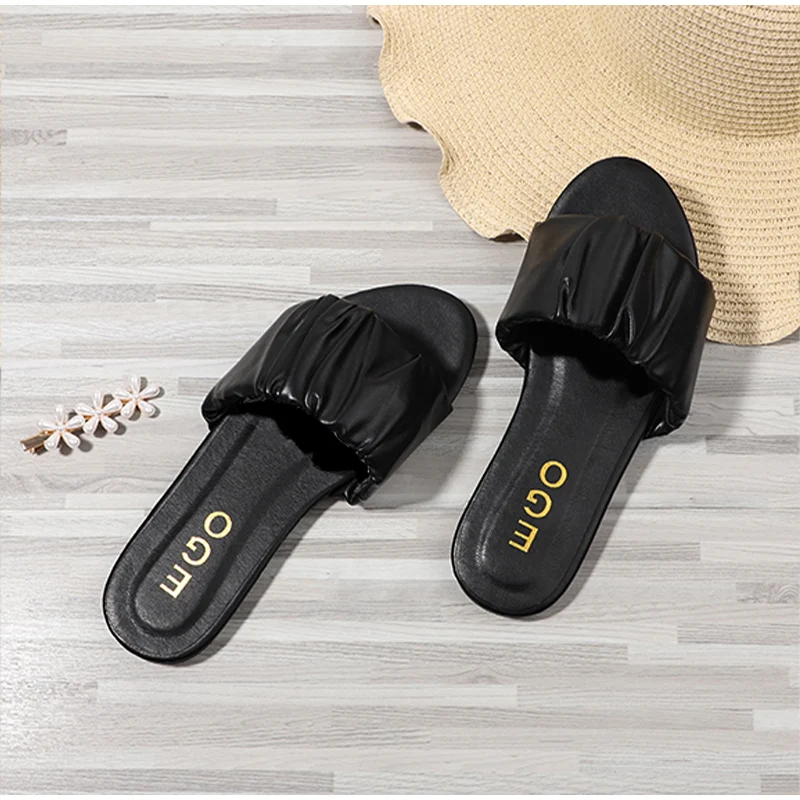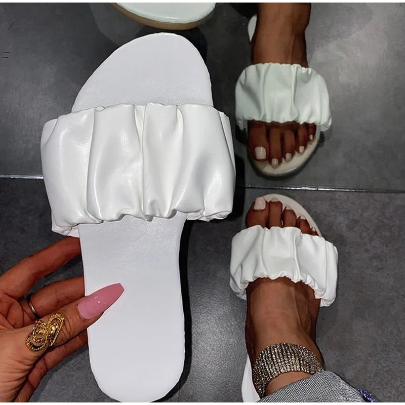 Тапки женские из экокожи, повседневные плиссированные шлепанцы, пло...