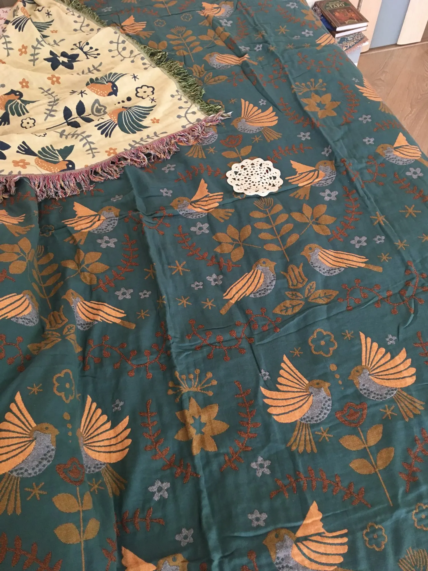 Очень красивое тактильное покрывало! Маловато по размеру и боюсь, что сядет после стирки, но его красота перекрывает его недостатки. Доставка была молниеносной- 14 дней и оно у меня дома