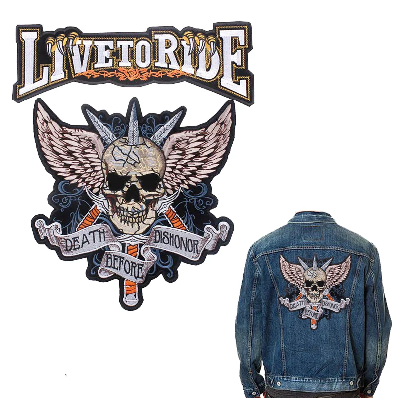 Большие байкерские нашивки с черепом для одежды, большие вышитые на...