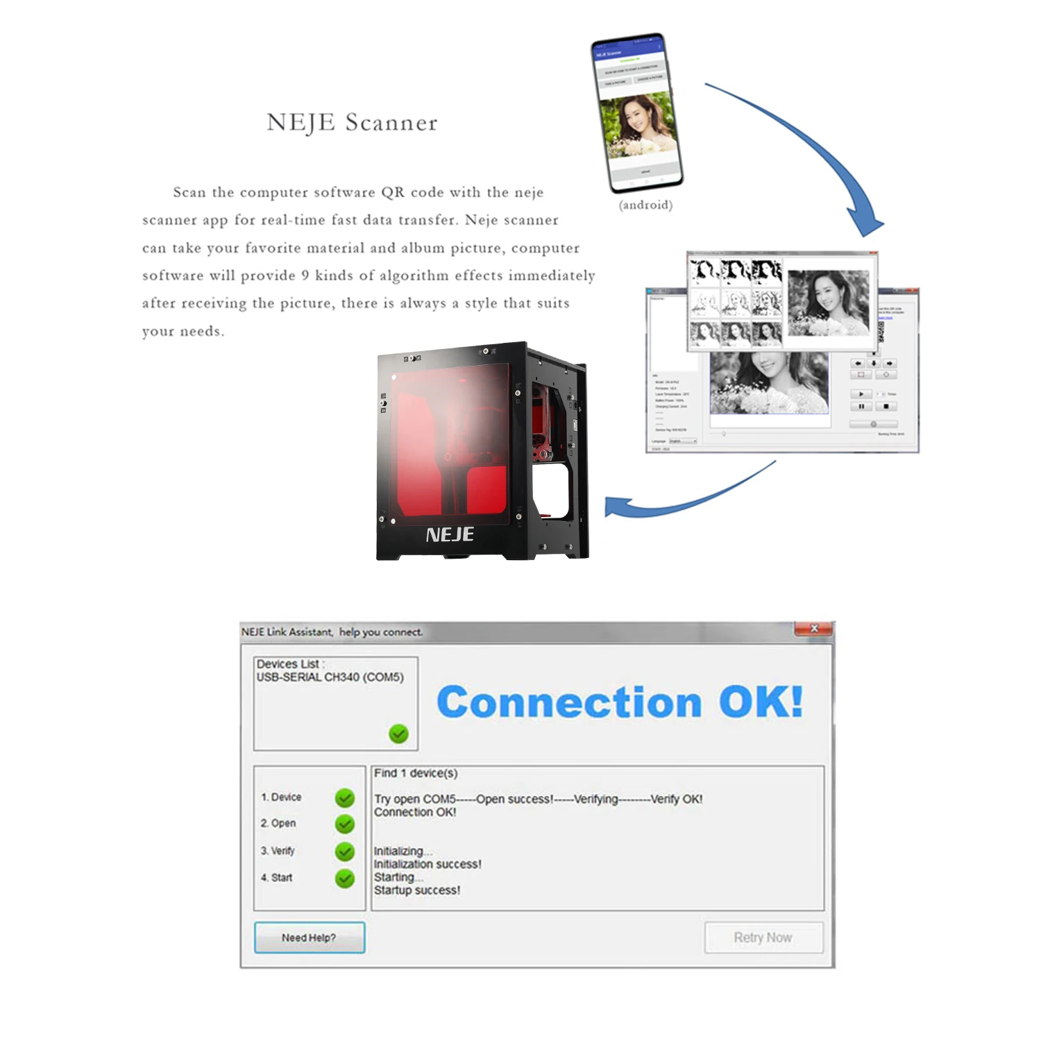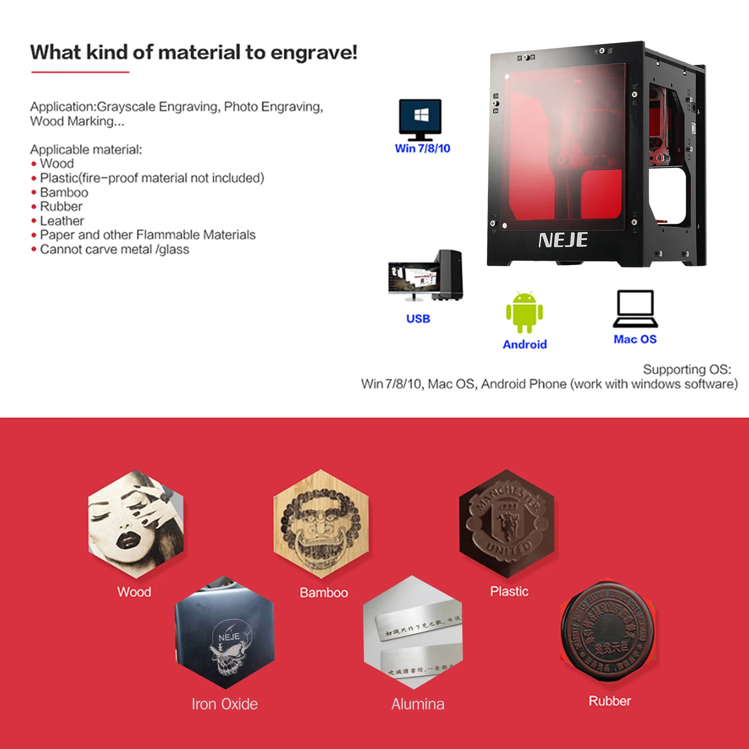 Эта лазерная гравировальная машина имеет функцию резьбы по принту и более практична, чем обычная гравировальная машина. Этот мини-лазерный гравировальный станок с высокой точностью и высокой стабильностью отлично подходит для самостоятельной гравировки. Он поддерживает автономную работу, удобен, чем обычный гравировальный станок.Особенности:Последняя Разработка 10 Вт высокопроизводительного модуля может быстро выгравировать и гравировать черный алюминий, дерево, кожа, пластик, окрашенный металл и т. д.Подходит для икон, глубокой гравировки и других материалов, Поддержка bmp, jpg, png и других форматов изображений.Тысячи облачных материалов постоянно обновляются для создания более интересного образа.Сканируйте qr-код с помощью приложения NEJE Scanner (только поддержка версии Android), он автоматически подключается к компьютерному программному обеспечению (Поддержка программного обеспечения NEJE windows, замена NEJE для программного обеспечения macbook, поддержка приложения N-Scanner), автоматическое подключение по, простота в эксплуатации.Профессиональные алгоритмы обработки слов, алгоритм выполняет 1:1 рендеринга каждого пикселя без потери.Различные алгоритмы изображения более точно представляют характеристики изображения вашей семьи или кумира.Поддерживает параллельную гравировку и автономную работу, до 10 машин можно управлять только одним компьютером.Материнская плата совместима с различными лазерами питания и поддерживает 2pin mos. Она может заменить больше оборудования питания для достижения эффекта расширения питания.Полностью Металлическая прецизионная конструкция винта с механическим приводом и стабильная механическая структура с полной рамой обеспечивают точность X-Y оси в движении.Магнитная Защитная панель и Кнопка аварийной остановки обеспечивают безопасность. CE, FCC, FDA сертификация без излучения.5V3A низковольтный источник питания, также может питаться от мобильной мощности, очень удобно.Оснащен лазерной трубкой 450nm, лазером высокой мощности, более прочным, безопасным и гравированным глубже.Изделия могут быть вырезаны в том числе: окисленный металл (оксид железа и оксид алюминия), красное дерево, бамбук, бумажные карты, слоновая кость, кожа, легковоспламеняющийся пластик, PCBA и т. Д.Примечание:1. Он не может гравировать металл (за исключением оксида железа и глинозема), акрил и любой другой огнестойкий материал. Белый материал не работает хорошо.2. Продукт подходит только для личных DIY, из-за скорости резьбы, не рекомендуется для промышленного использования.3. Когда машина работает, рекомендуется не смотреть непосредственно на лазерную головку и не управлять лазерной головкой непосредственно вручную.4. Лазерный диод является чувствительным компонентом, обратите внимание на предотвращение электростатического повреждения (продукт включает в себя дизайн электростатической защиты, но есть определенная вероятность повреждения)5. Приложение поддерживает только версию Android. (работает с программным обеспечением windows)Характеристики:Материал: алюминий + акрил + нержавеющая стальОсновной цвет: черныйМощность: 10 ВтОптический Мощность: 2,5 WВходное напряжение: 100-240 ВВыходное напряжение: 5 В, 3 АДлина лазерной волны: 450нмФормат изображения: bmp, jpg, png и т. Д.Размер изображения: 490*490 пикселей/0,075 мм точечное расстояниеИзображение гравировка 