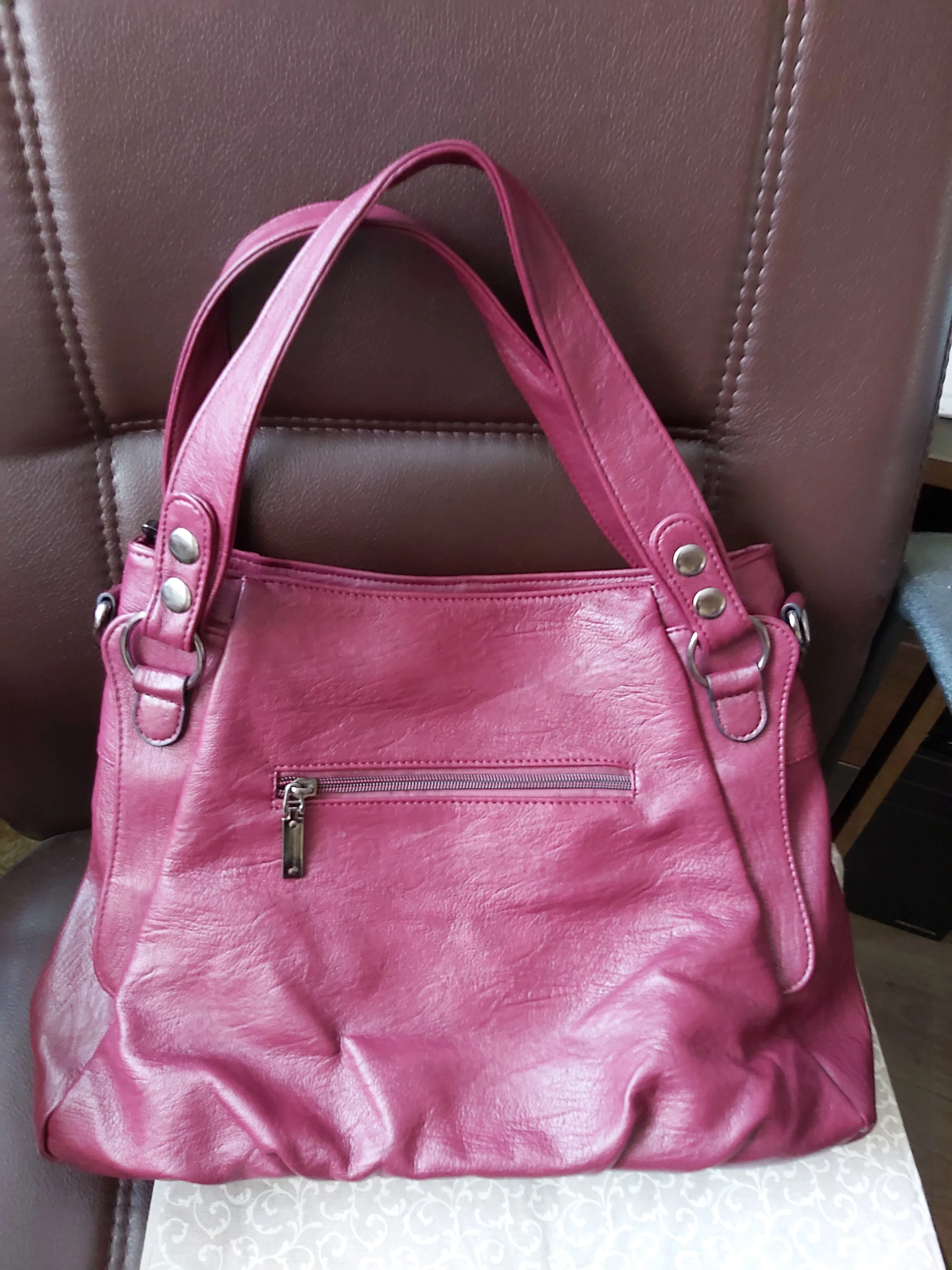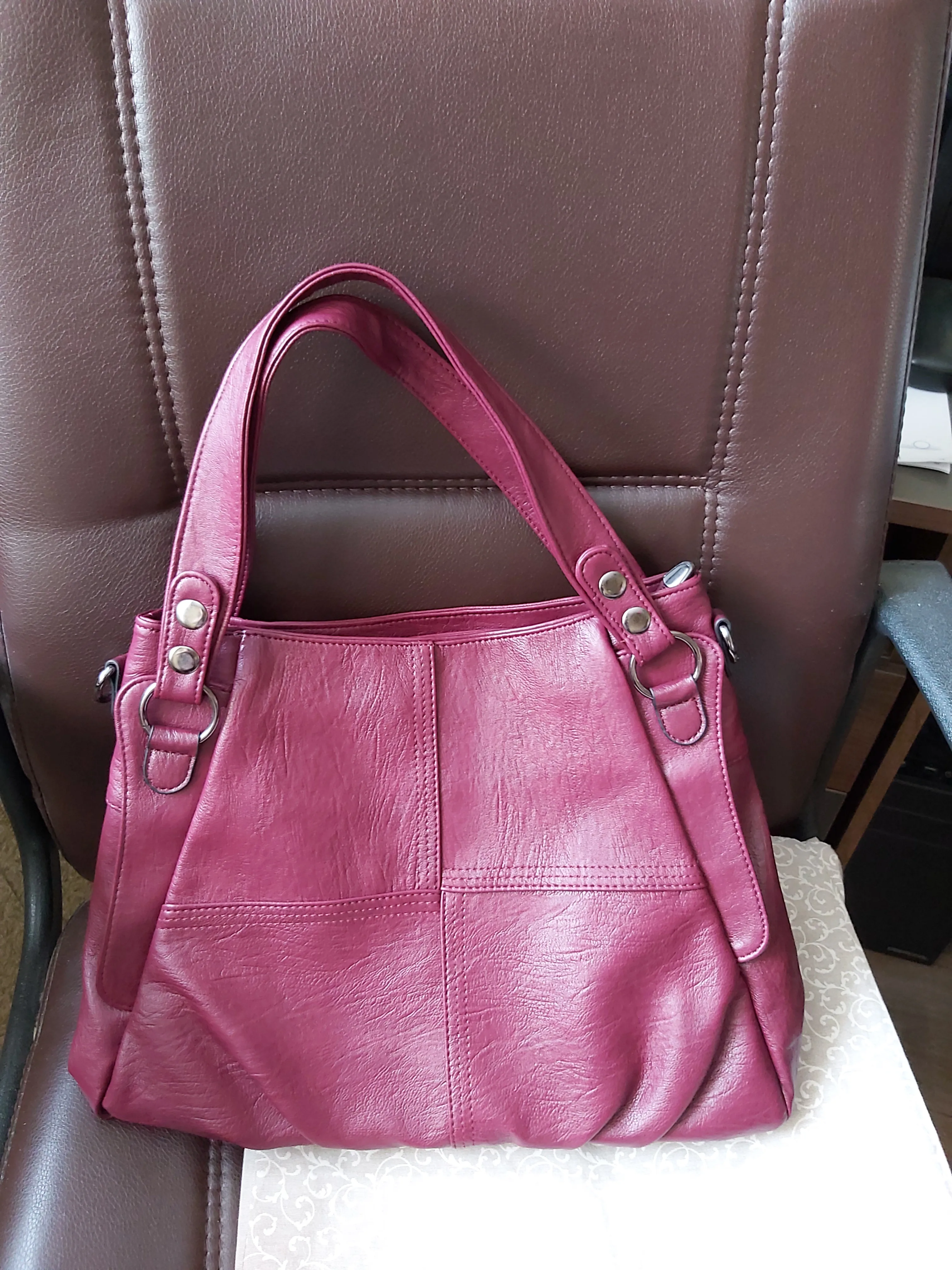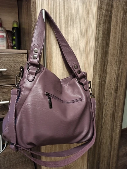Сумка на деле оказалась ооочень большая, целый баул. С жёсткими ручками. Я открыла спор и воспользовалась бесплатным возвратом, но деньги не вернули!!!! Насчёт кожи, мне ещё ни разу не встречалась такая блестящая кожа, похожая на клеёнку...