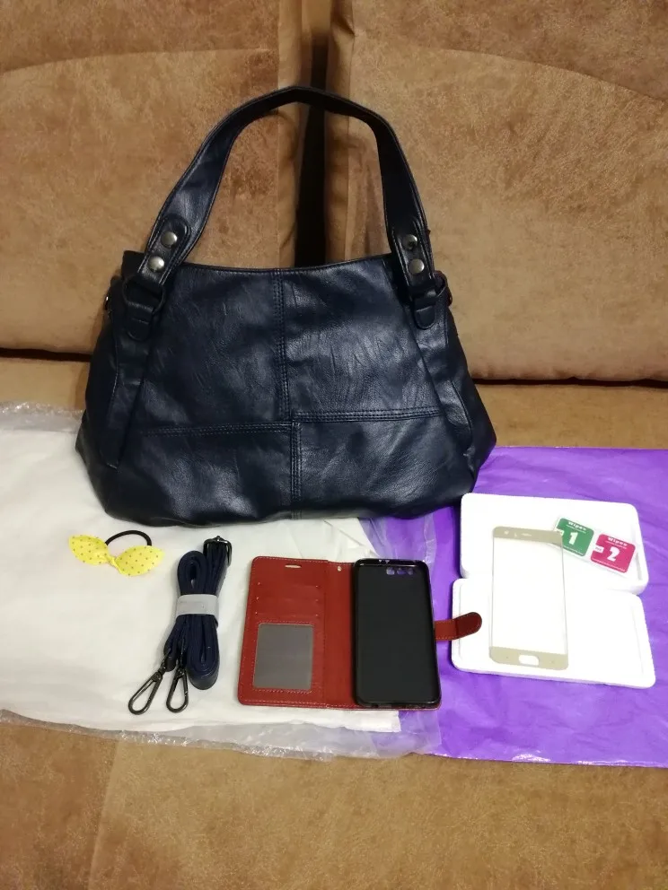 Заказ пришёл очень быстро, за 20 дней, для Магадана это фантастика! Три заказа объединили в один, это удобно. Сумка, как и ожидала кожзам, но неплохой. На фото кажется помятой, на самом деле нормальное состояние, цвет очень-очень тёмно-синий, подклад из качественной плотной ткани. Лёгкая, молнии хорошие. Чехол и защитное стекло (пластик) подошли к смартфону идеально. Отслеживание было. Очень довольна покупкой, продавцами и быстрой доставкой. Всем 5 звёзд.