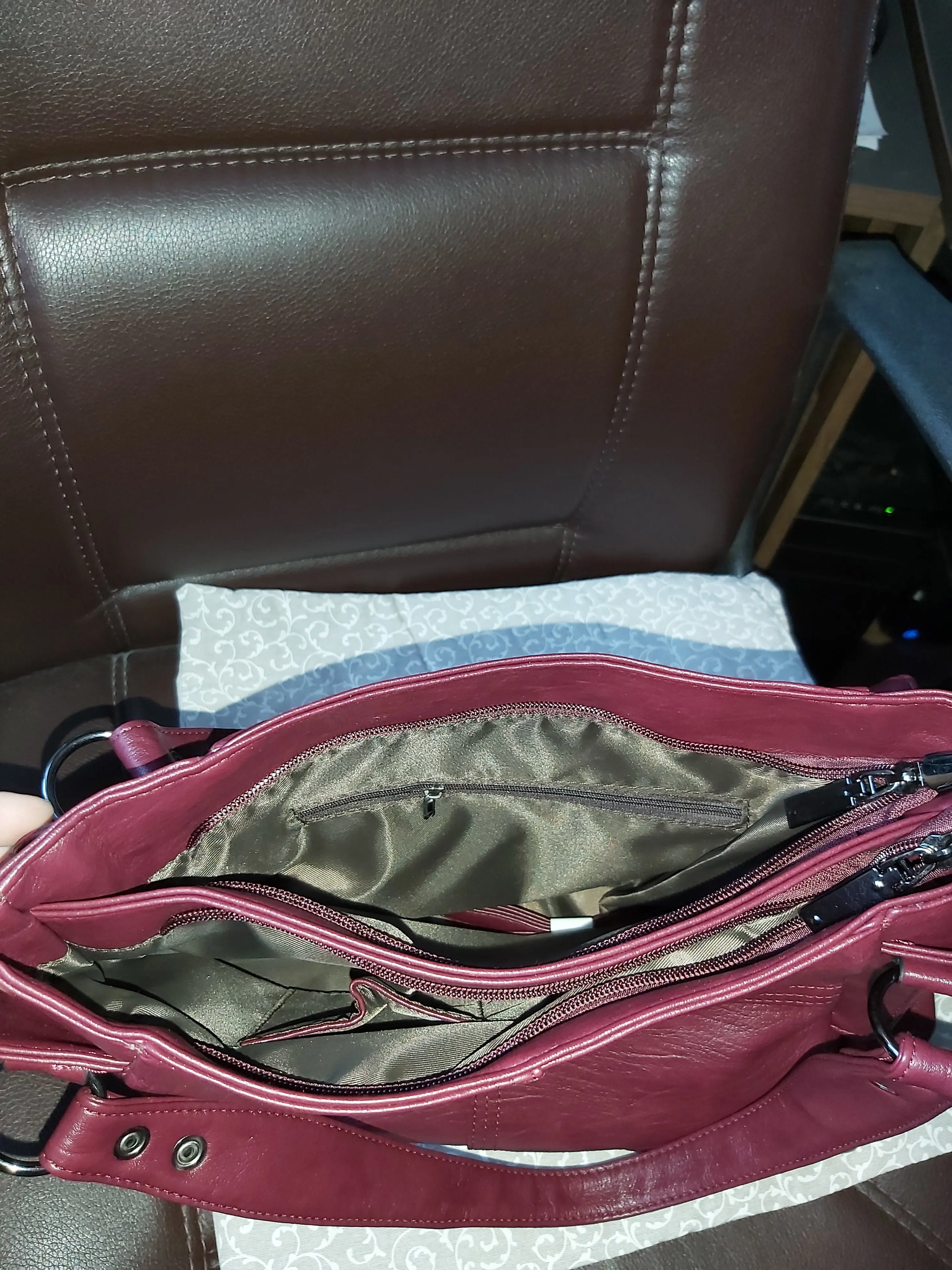 Сумка пришла быстро,без запаха, так и не понятно натуральная кожа или нет.