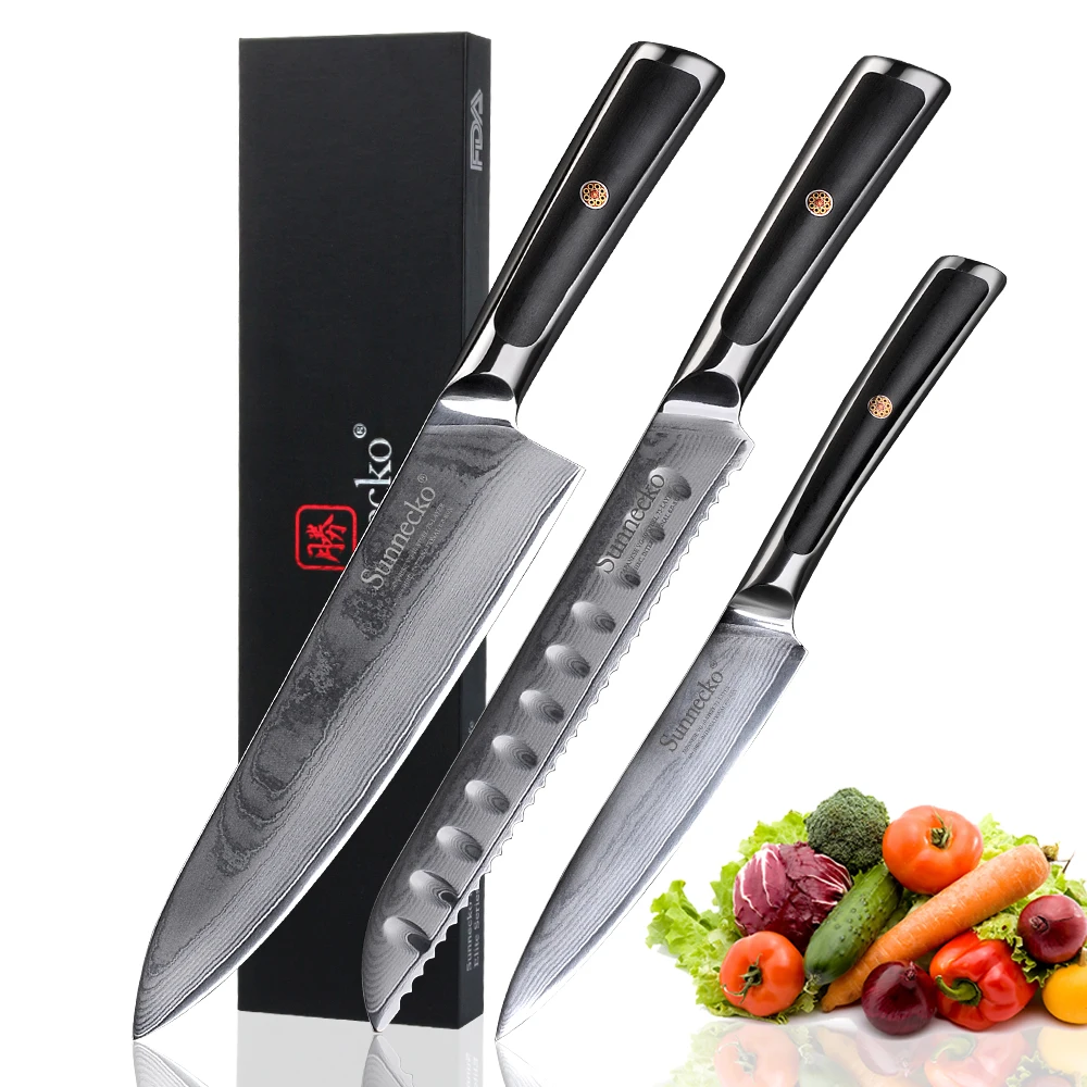 SUNNECKO Дамасская сталь ножи повара для хлеба японские VG10 стальные лезвия G10 ручки кухонные ножи нож для резки мяса и фруктов(Посылка в случайном порядке)