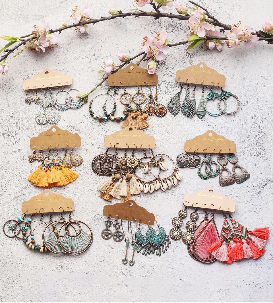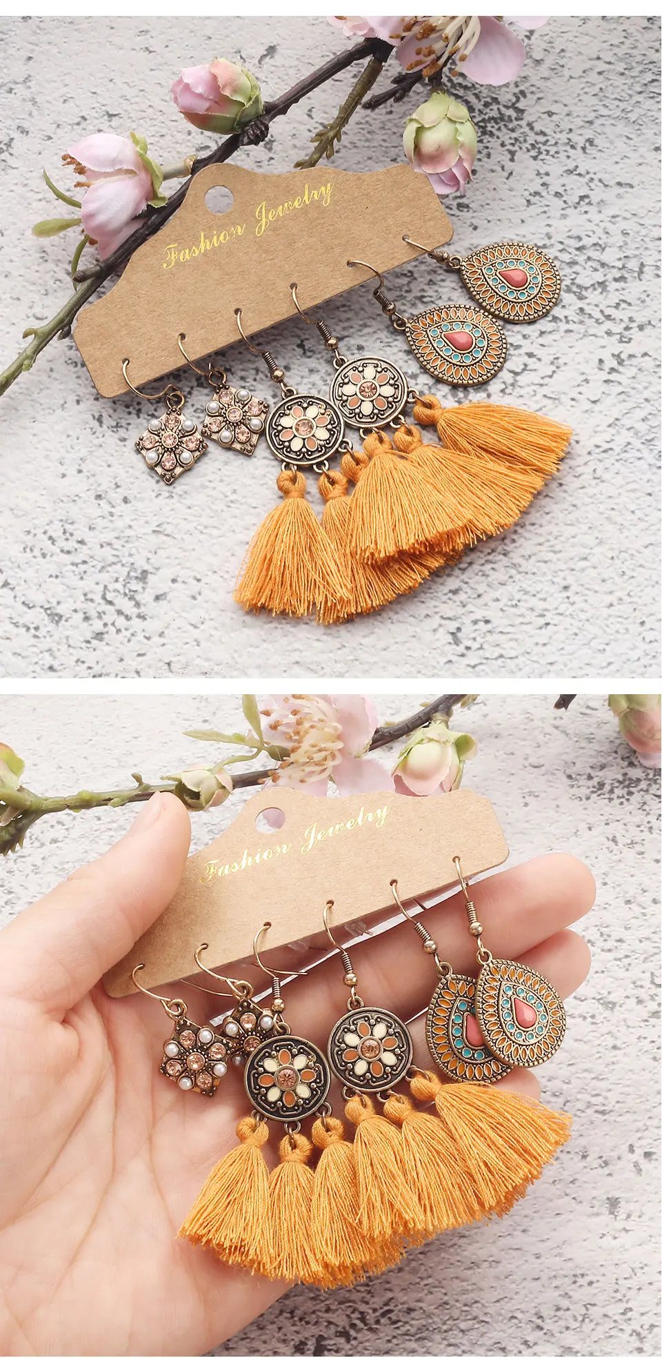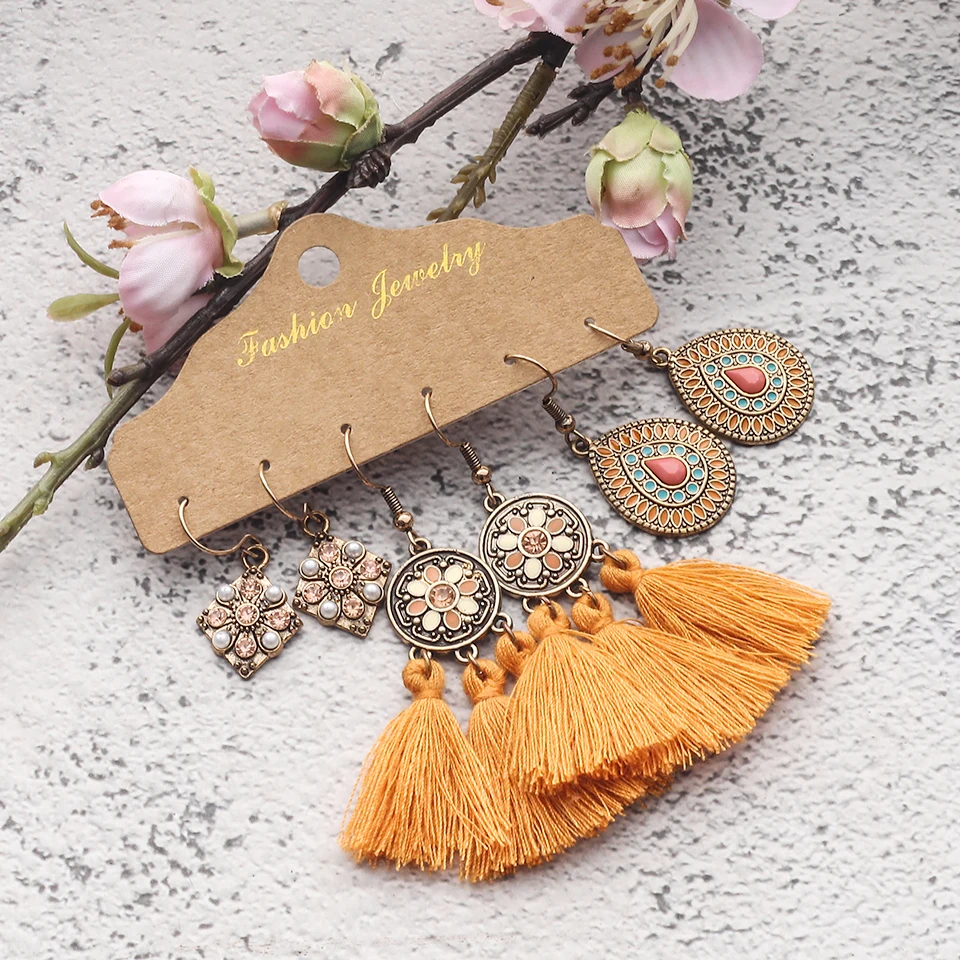 Набор этнических богемные серьги в виде капель в стиле ретро для женщин, ювелирные украшения для свадьбы, годовщины, Рождества