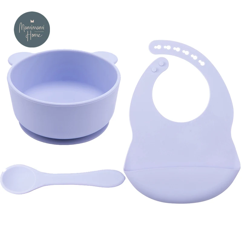 Набор посуды детский однотонный, переносная силиконовая тарелка, чашка, присоска для кормления малышей, ложка из силикагеля