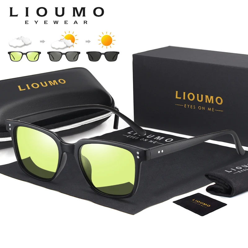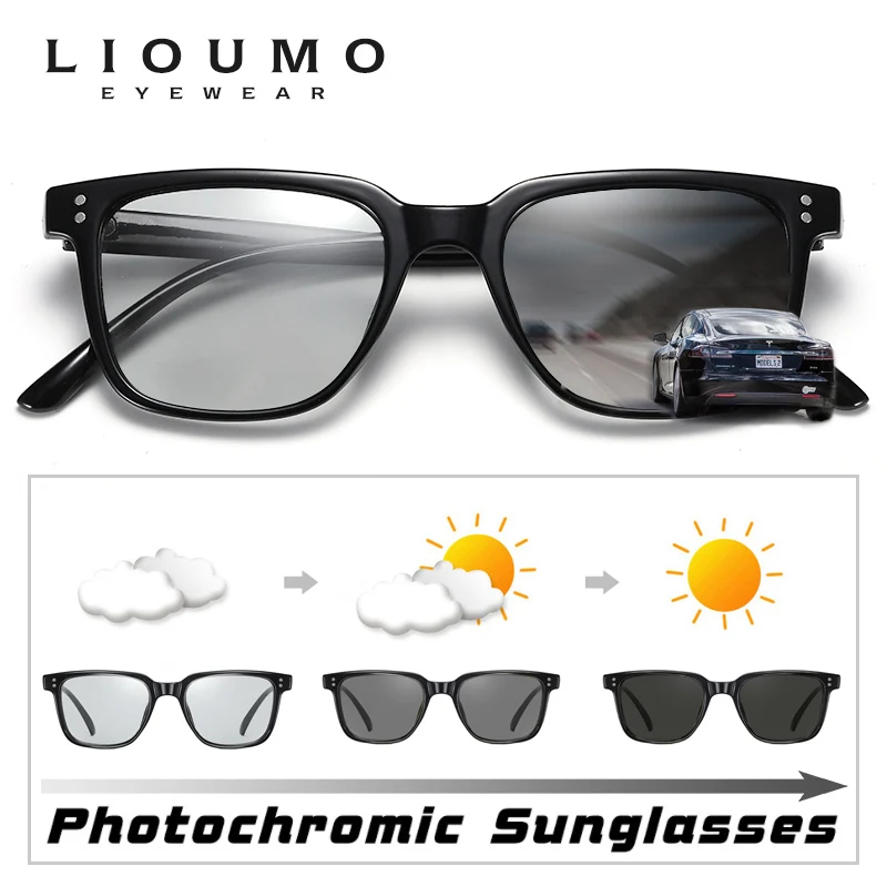 Солнцезащитные очки LIOUMO квадратные для мужчин и женщин, поляризационные фотохромные солнечные очки для вождения с антибликовым покрытием и функцией дневного и ночного видения