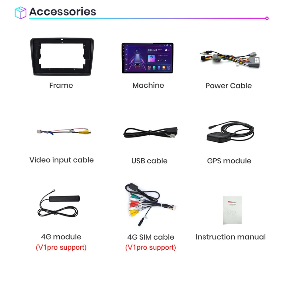 1. Штифт-штифт: Кабель питания Junsun radio' является штифтом для штифта, прост в установке;2. Встроенный Carplay/ Android Auto: Поддержка версии V1Pro, просто используйте кабель телефона, подключите его, стабильный и простой в использовании; (V1 поддерживает только Android Auto, но нужно покупать; V1C не поддерживает)3. Поддержка подголовника: только поддержка версии Junsun V1;