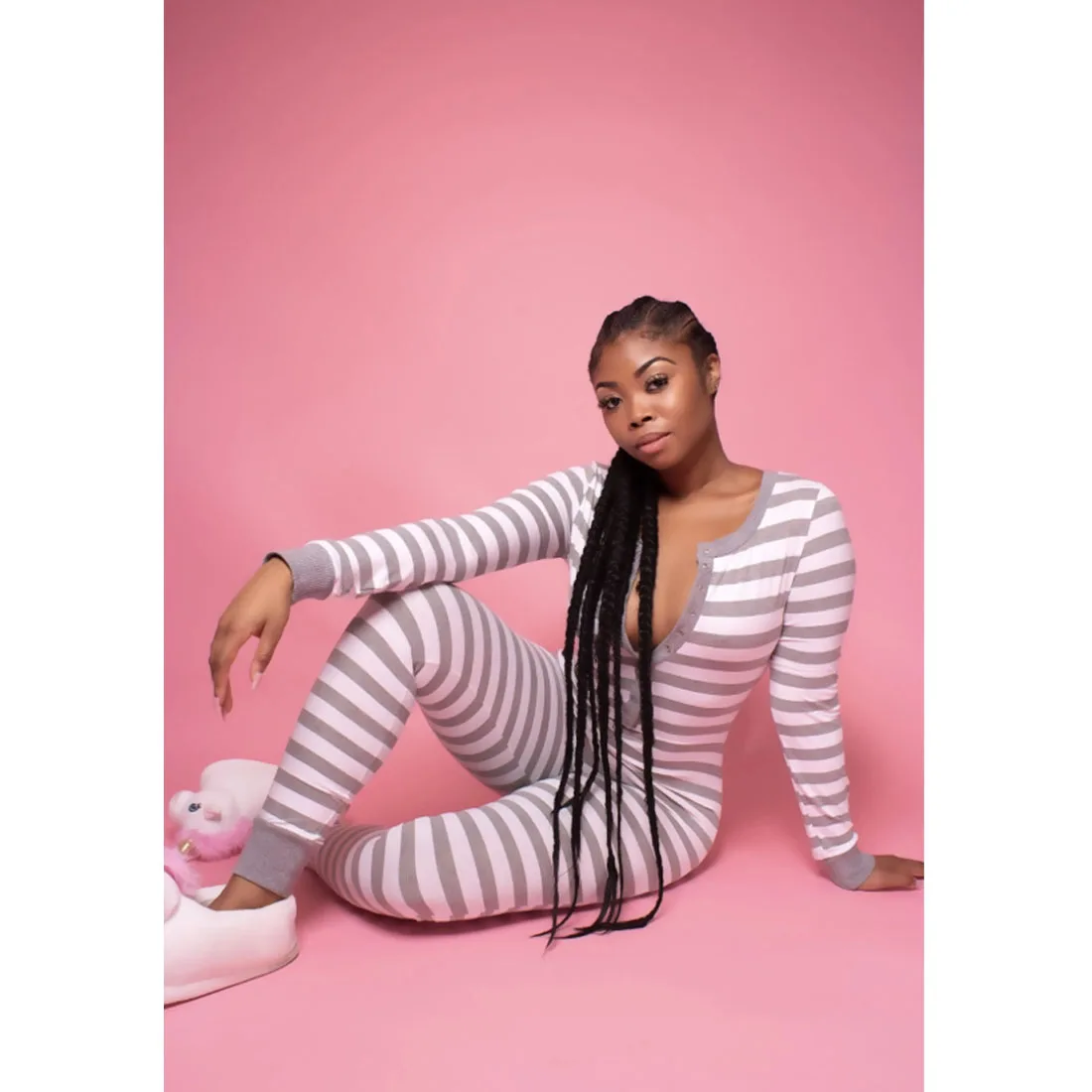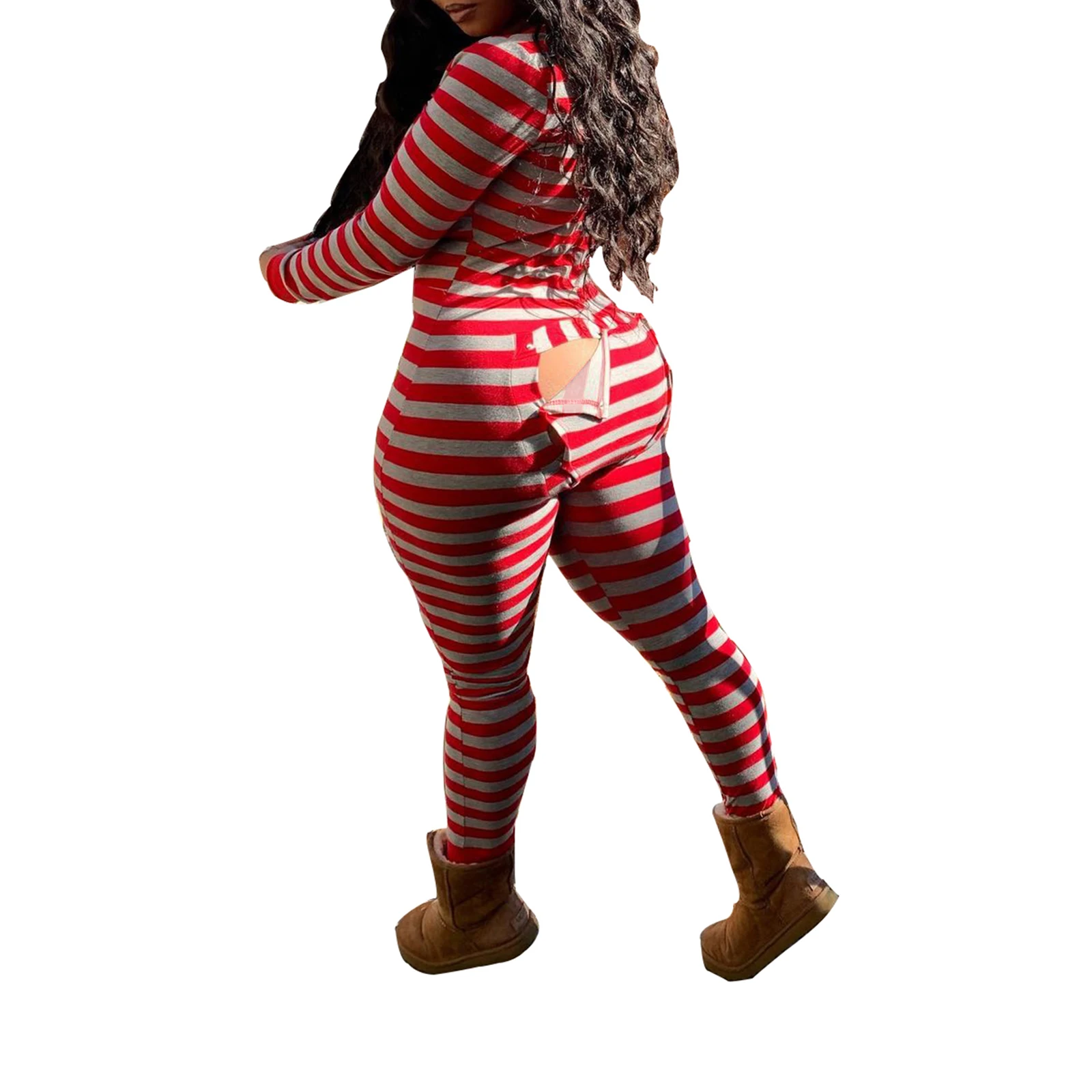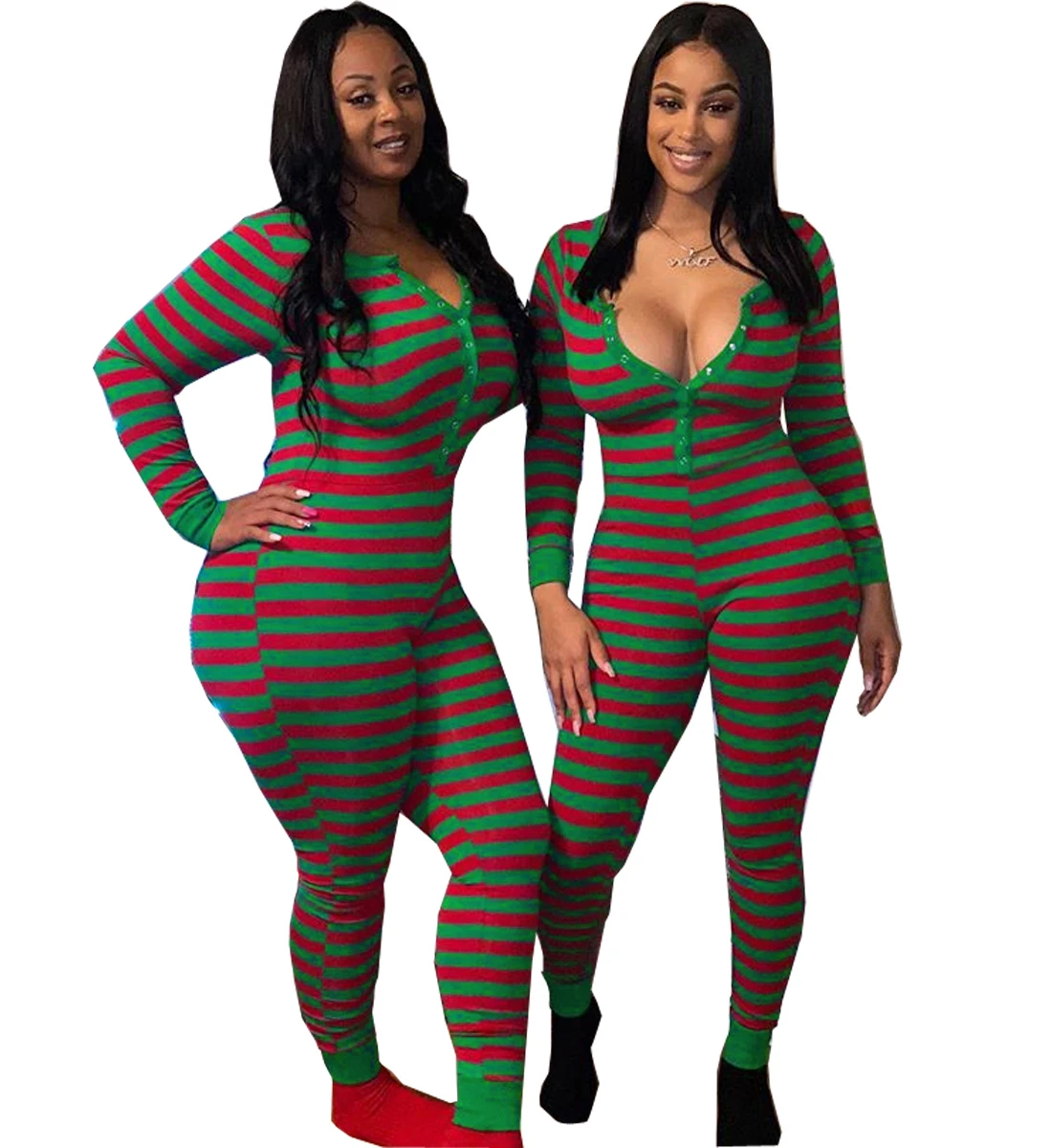 Сексуальный женский Облегающий комбинезон в полоску с длинным рукав...