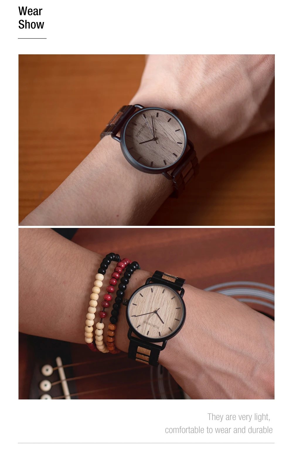 Бренд: BOBO BIRD Модель: GT023 Стиль: Роскошная Мода Цвет: коричневый, желтый Пол: мужчины Механизм: японский кварцевый механизм Особенность: праздничный подарок Вес: 113 г Периметр: 210 мм Материал корпуса: дерево Водонепроницаемый для повседневной жизни