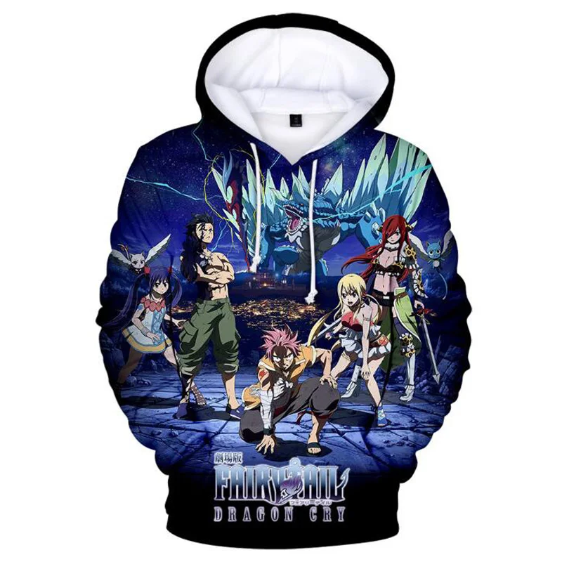 Толстовка с капюшоном и карманами для мальчиков, свитшот с рисунком аниме, уличная одежда, Худи оверсайз с рисунком сказочного хвоста, 3D