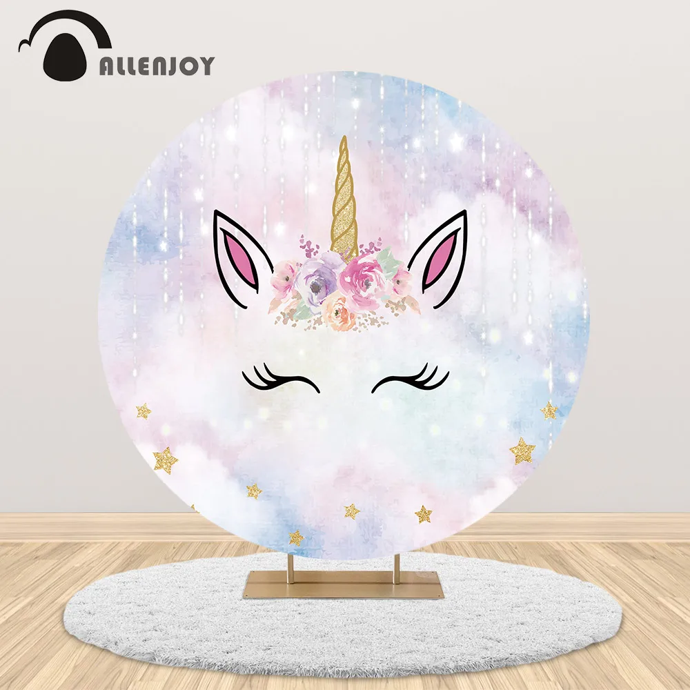 Круглый фон Allenjoy с изображением единорога звезд цветов для дня рождения, свадьбы, крещения, домашний декор баннер для фотосессии