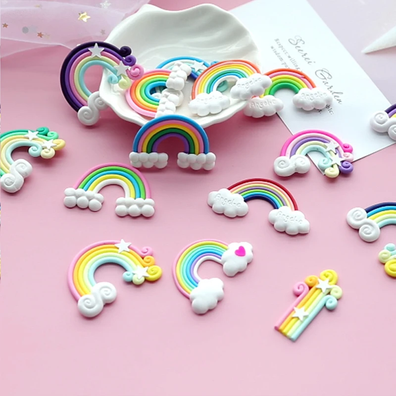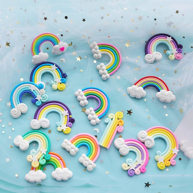 10 шт. Полимерная глина Радужные облака украшения DIY принадлежности для рукоделия ювелирные изделия Аксессуары для волос телефонная нашивка в виде ракушки Искусство Декор материалы
