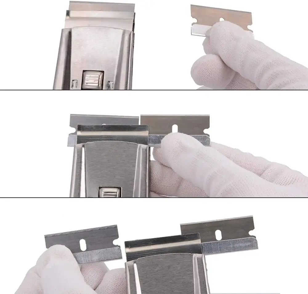 Спецификация Продукт: скребок для бритвы и лезвия для бритвы из углеродистой стали Размер скребка: 4,3x1,9 дюйма Размер лезвия: Ширина 1,5 дюйма Посылка входит: Набор 1: 1 скребок для бритвы + 10 запасных лезвий Набор 2: 1 скребок для бритвы + 100 запасных лезвий Применение 1. Снятие виниловой пленки и клея, наклейка инструмент для протирки стекла 2. Удаление пузырьков воздуха, удаление воды 3. Окно инструменты для очистки стекол, специальные инструменты для наклеивания строительной пленки, его также можно использовать, когда стеклоочиститель прикреплен с помощью наклейки или стекла. 4. Идеально подходит для удаления наклеек с окон автомобиля, жевательной резинки и многого другого, не нанесет царапин вреда вашему окну. 5. Поставляется в жесткой и жесткой коробке для дополнительной безопасности при транспортировке. 6. Нанесение на тонировку окна или виниловые вывески Особенность: 1. Лезвие из углеродистой стали заменяется, что продлевает срок службы скребка. 2. Идеально подходит для нанесения виниловой упаковки, хорошо очистить старую пленку, наклейку, клей и т. Д. 3. Лезвие переворачивается для безопасного хранения. Используются стандартные, двойные лезвия бритвы. 4. Скребок безопасен в использовании, вы можете спрятать лезвие скребка после использования. Примечания: Не забудьте спрятать лезвие после использования, чтобы изобразить себя от ненадлежащих царапин.