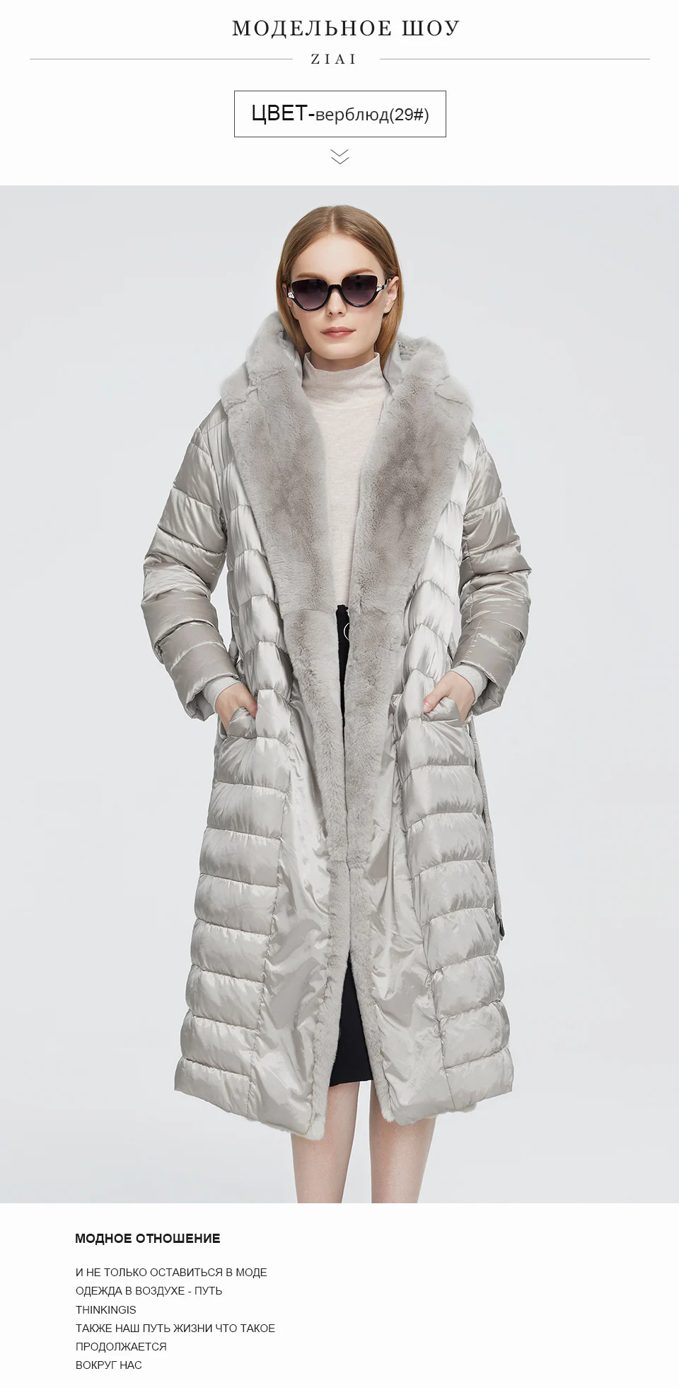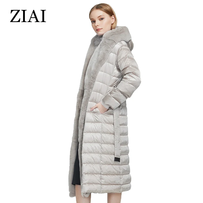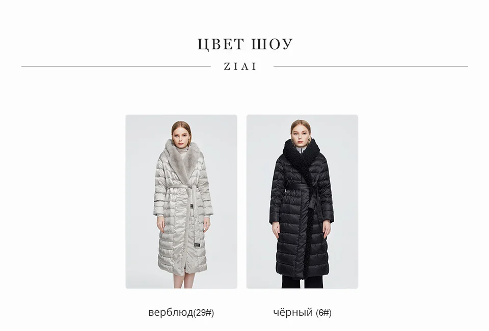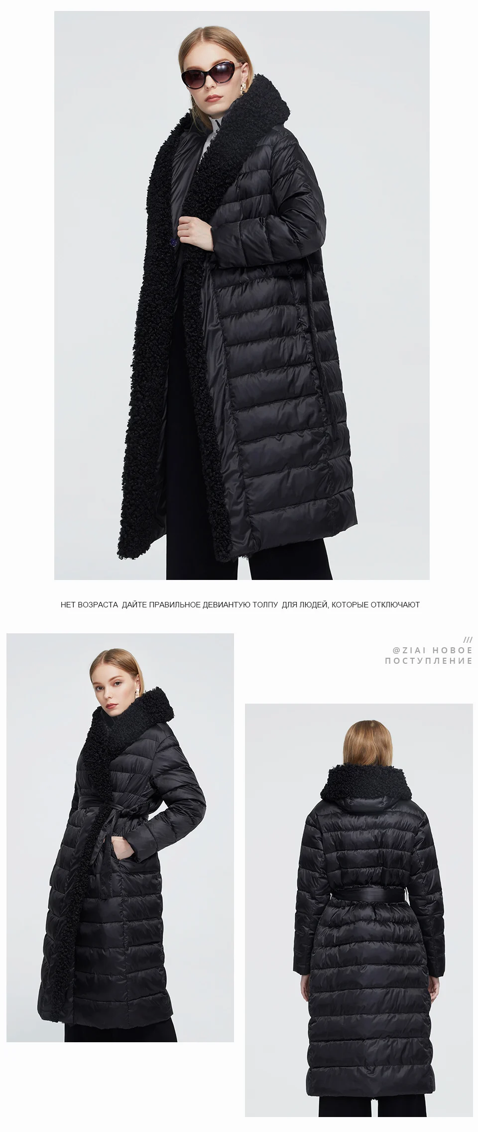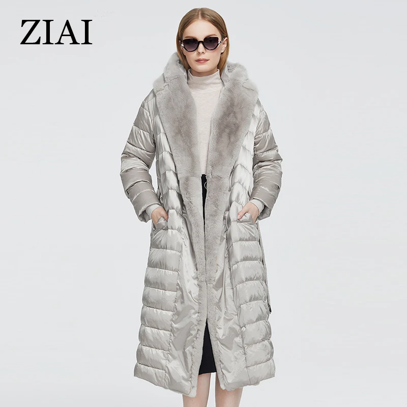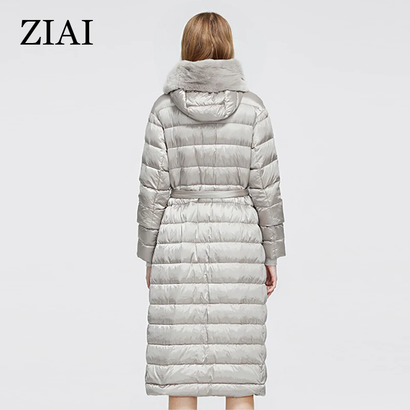 Куртка женская зимняя ZIAI, с меховым воротником, 2021, длинная, теплая, с поясом, AR-7518