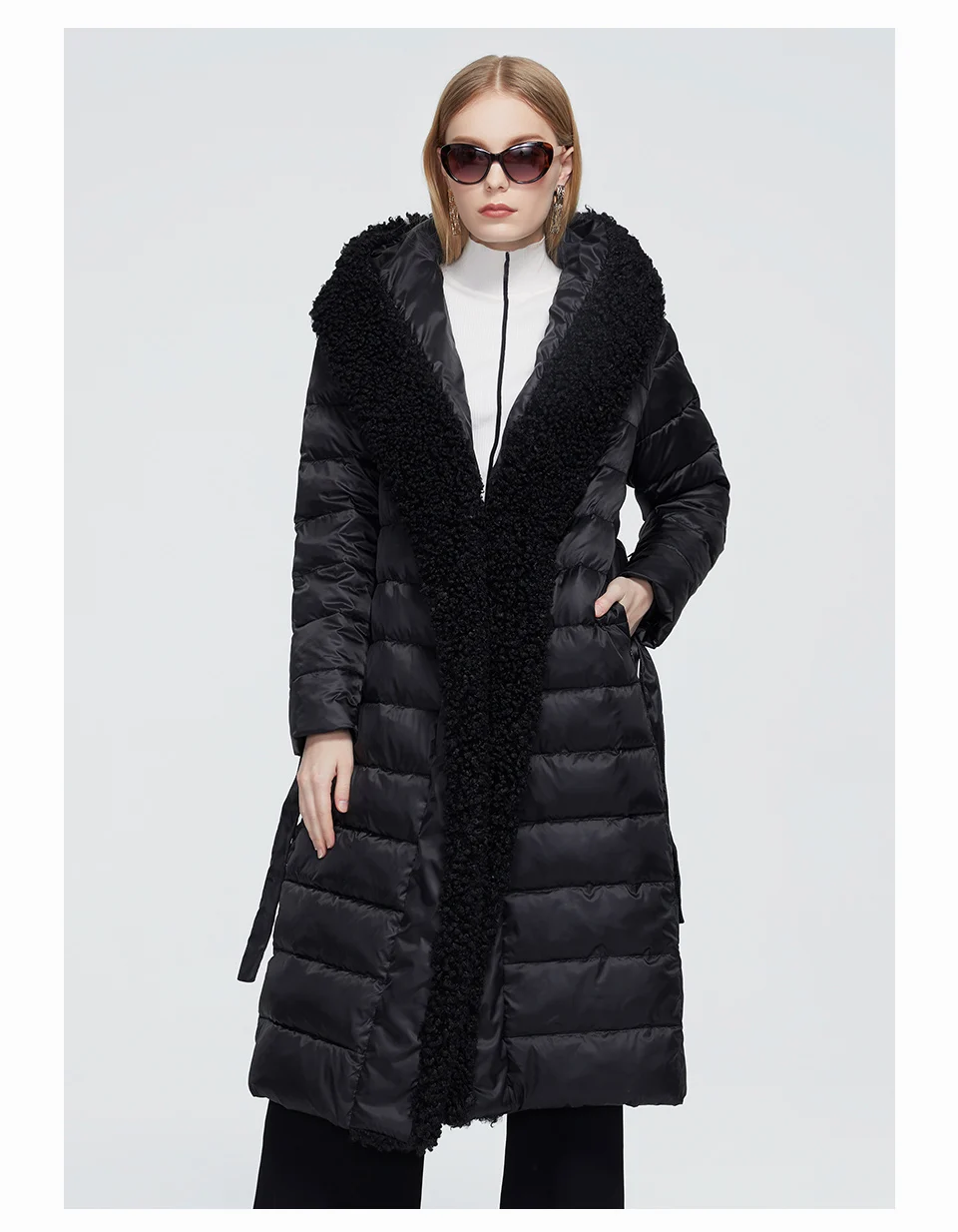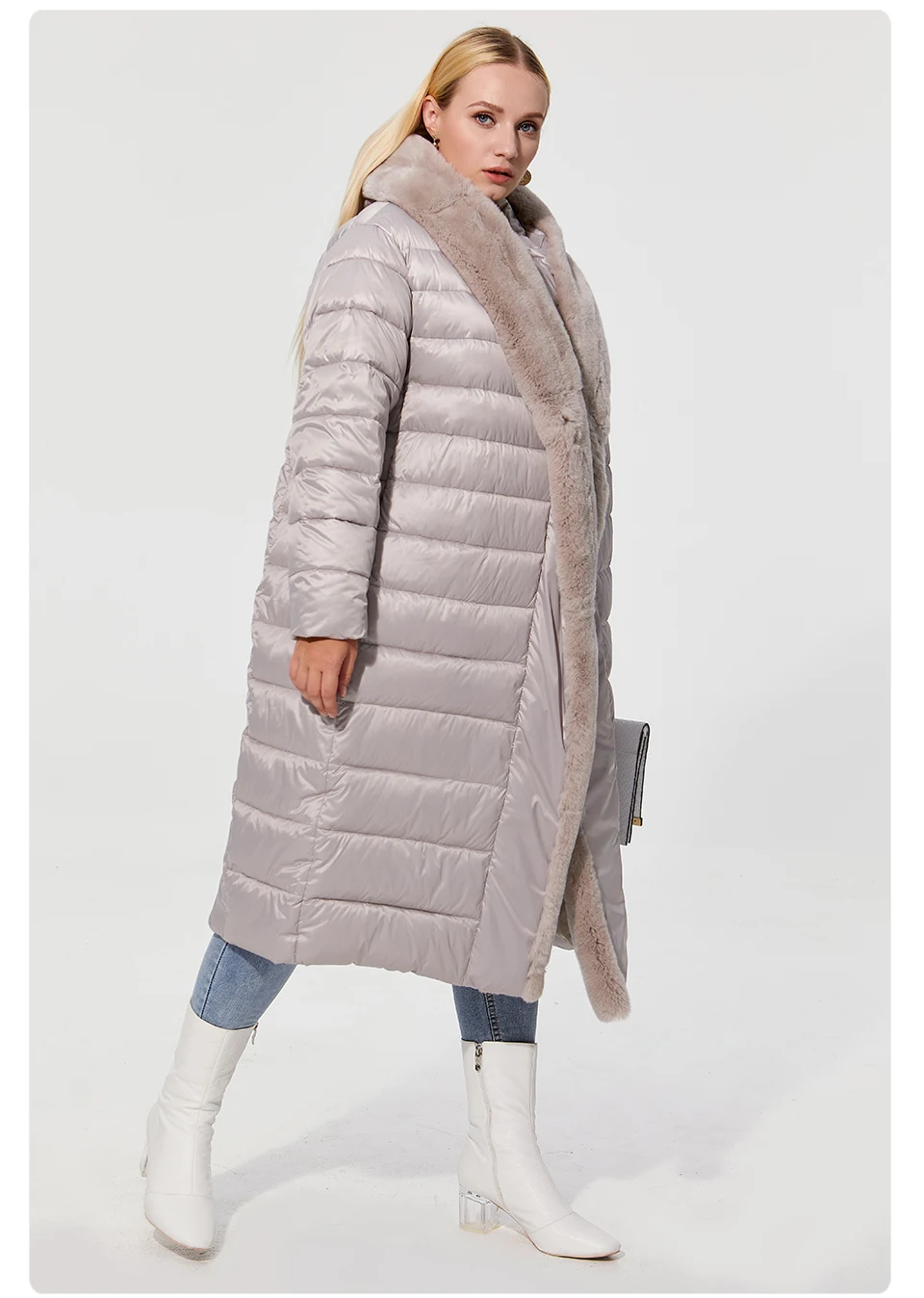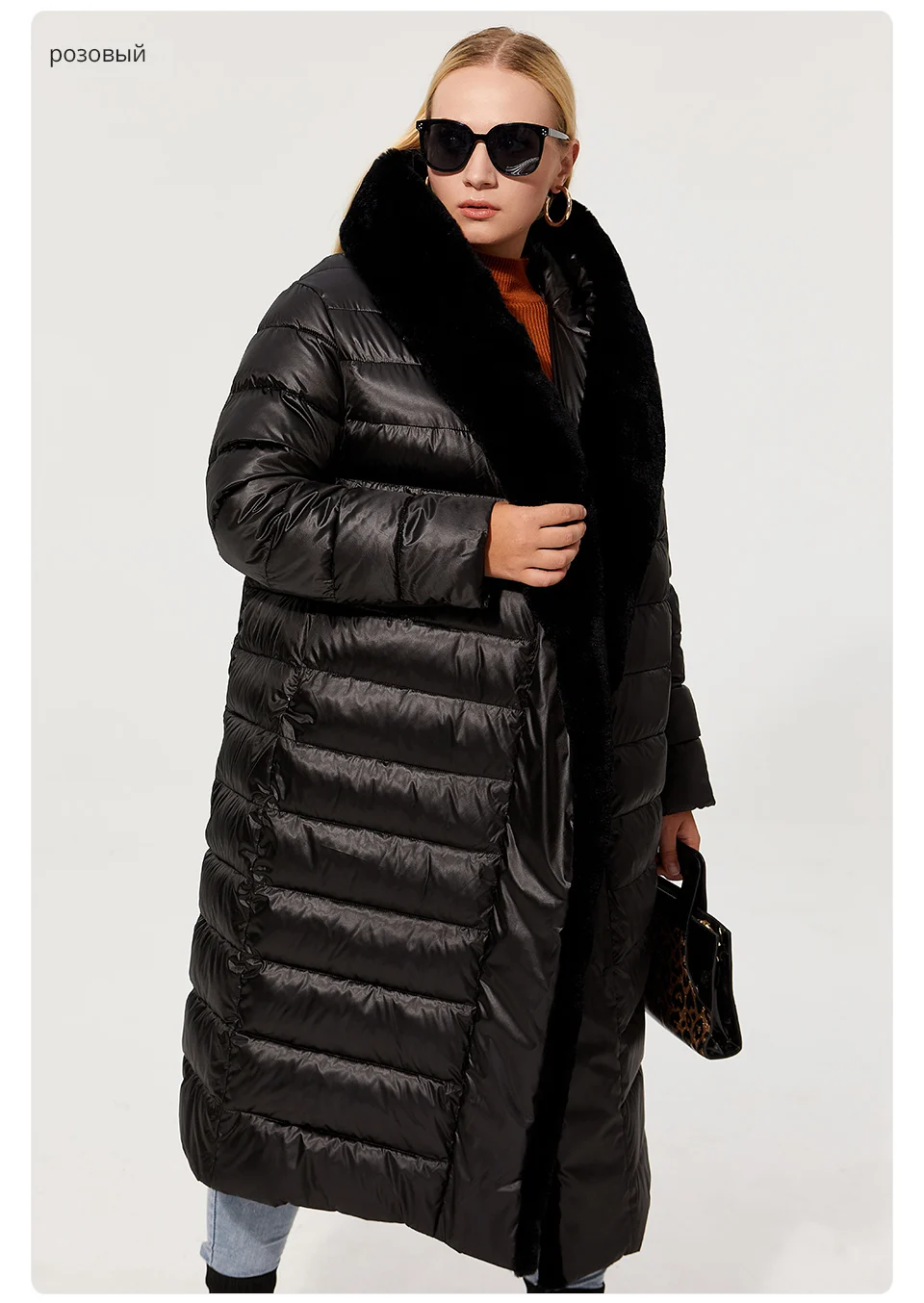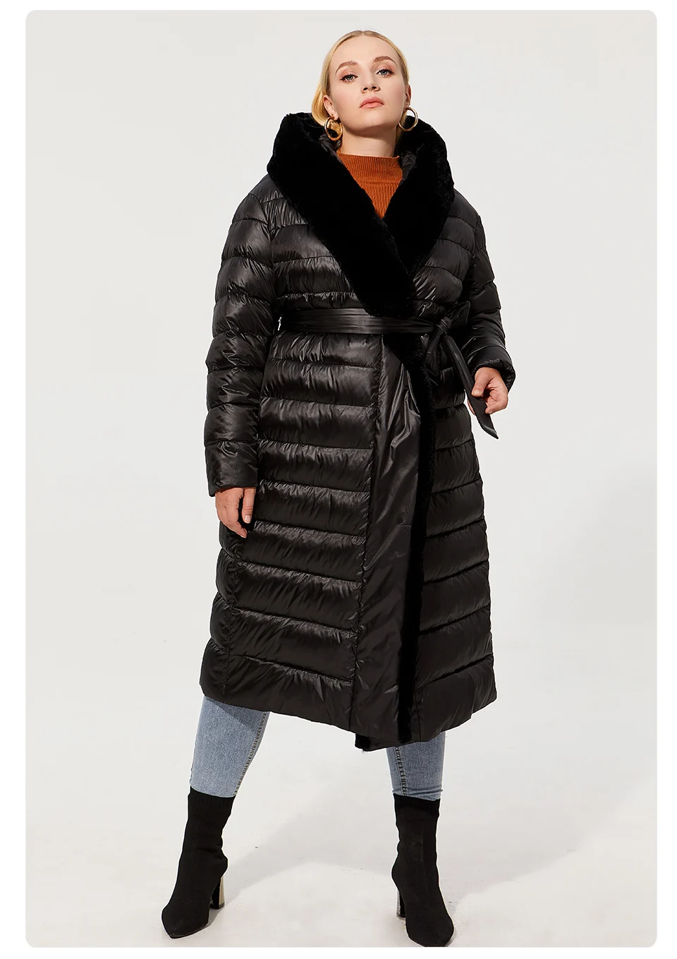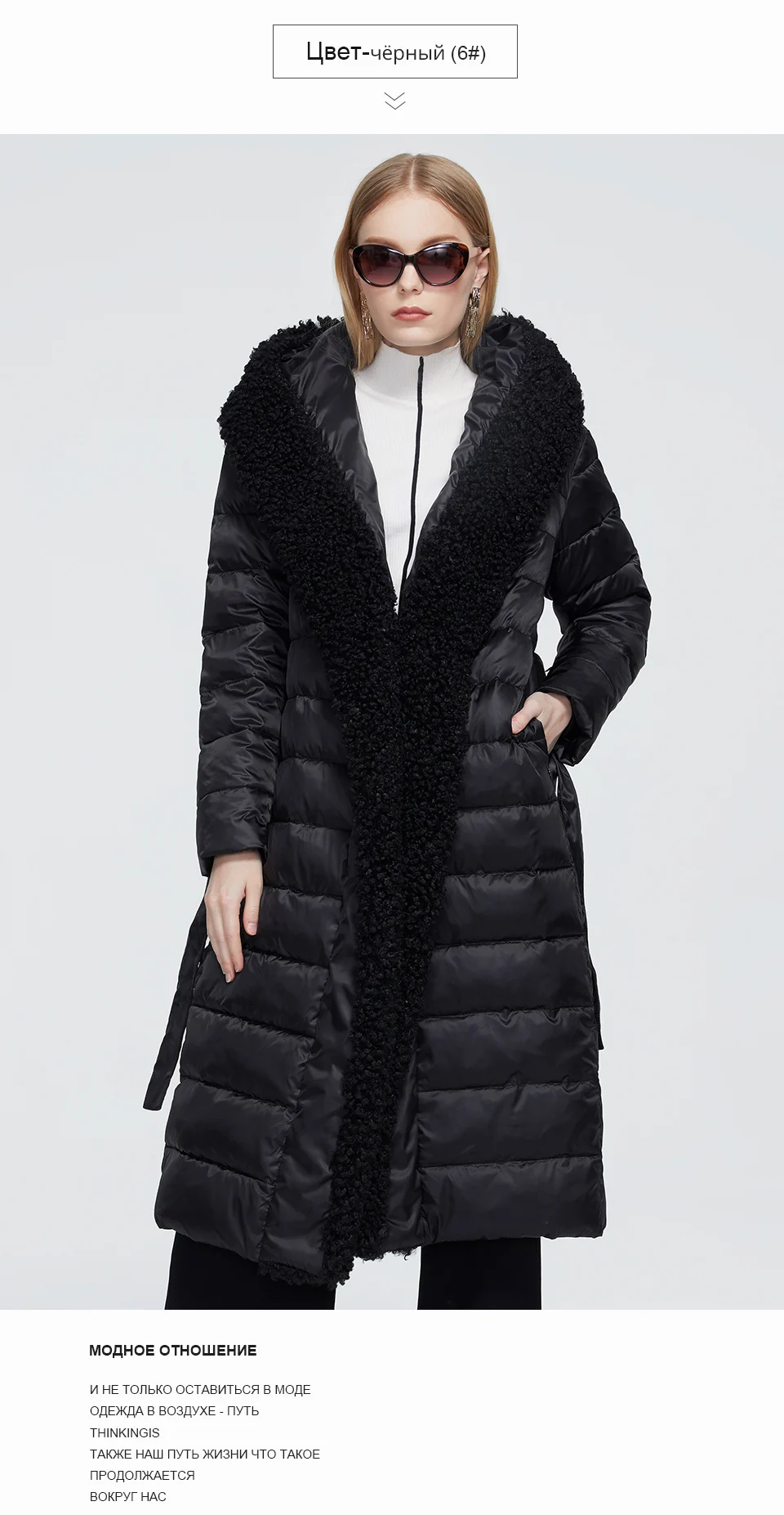 Куртка женская зимняя ZIAI, с меховым воротником, 2021, длинная, теплая, с поясом, AR-7518