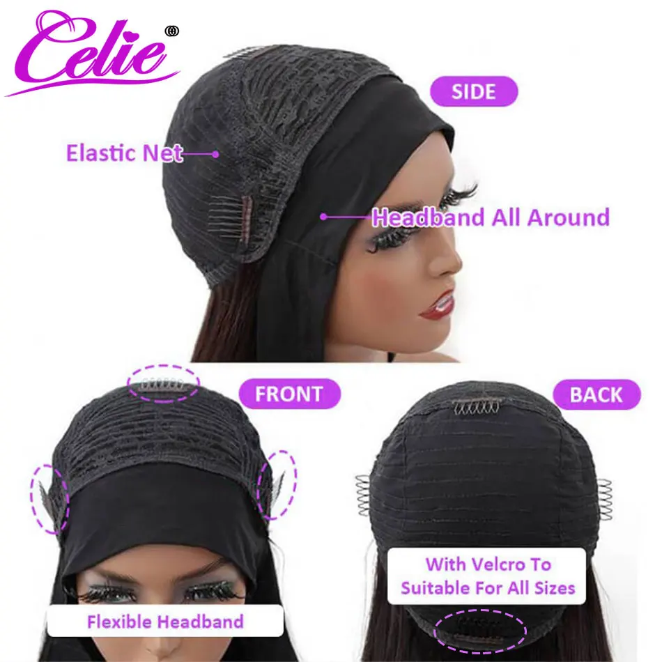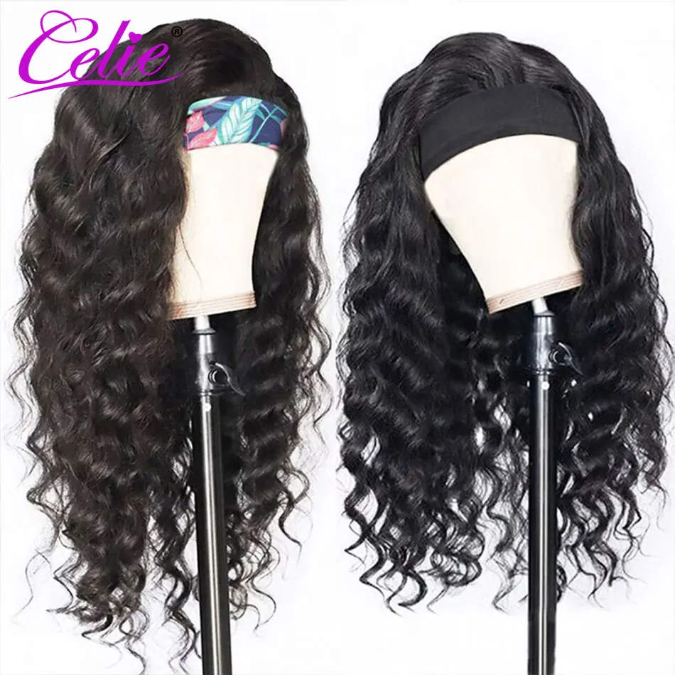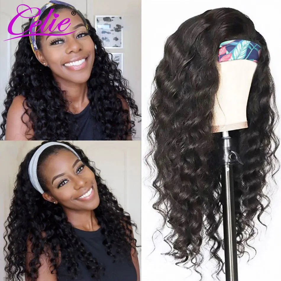 Celie волос парик с головной повязкой свободная глубокая волна парик 150% бесклеевая свободная глубокая волна человеческих волос парики для черных женщин шарф парик с головной повязкой