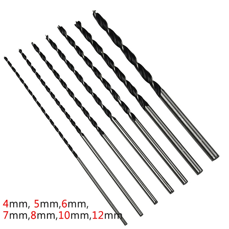 7 шт., 12 дюймов, 285-300 мм, удлиненное сверло Брэда, набор сверл для дерева 4, 5, 6, 7, 8, 10, 12 мм, деревообрабатывающий сверлильный инструмент Описание:Брэд Пойнт начинает сверление бит на центре, устраняет необходимость в точечном ударе.12 " (285-300 мм) длина, идеально подходит для толстых деревянных изделийИзготовлен из высокоуглеродистой стали с термообработкой, HRC48 ~ 50Размеры включают: диаметр 4 мм, 5 мм, 6 мм, 7 мм, 8 мм, 10 мм, 12 ммУпаковка включает: 7 шт. сверла/пластиковый подвесной мешок