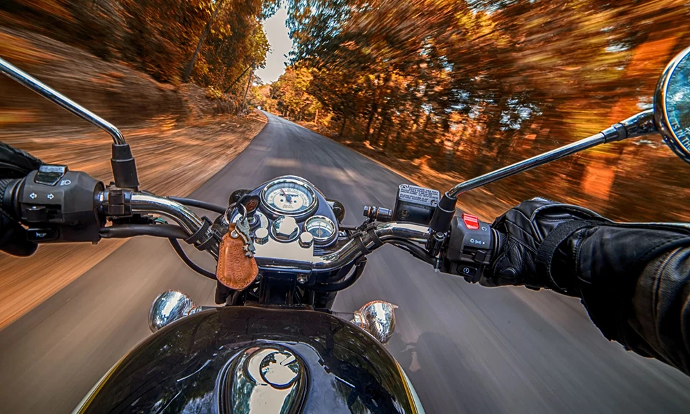 Обеспечивает ультра захватывающую перспективу.Езда на мотоцикле