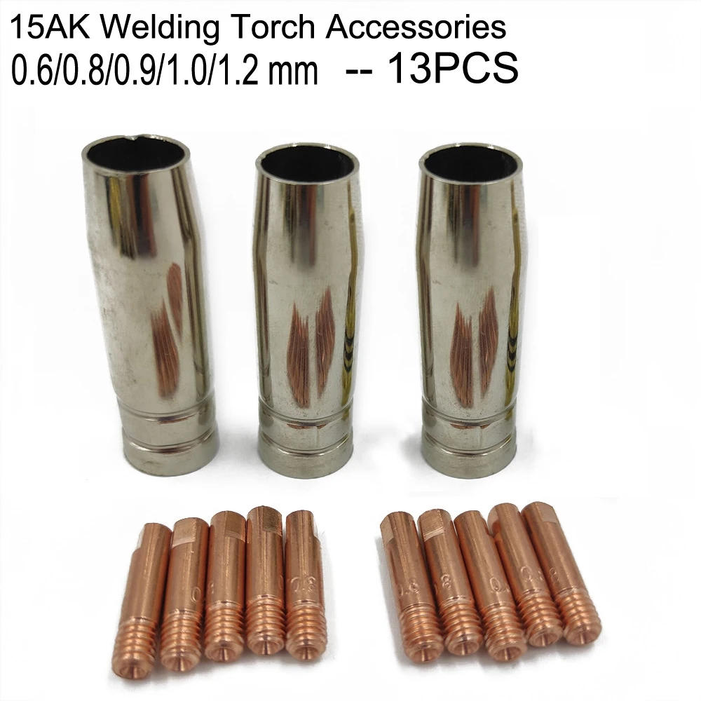 13 шт. сварофонарь CO2 Mig с воздушным охлаждением MB 15AK, держатель контактного наконечника, газ 0,6 0,8 1,2 0,9 мм, защитный кожух сварщика, комплект наконечников сопла