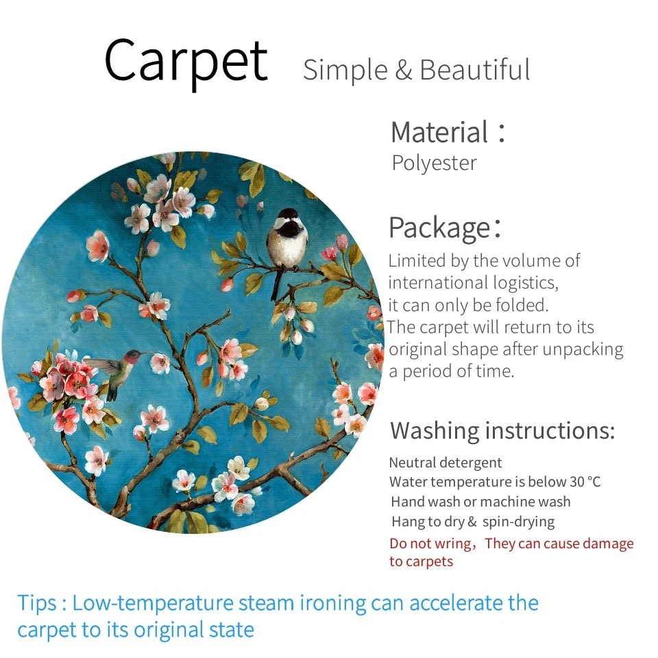 Ковер в американском стиле с принтом цветов и птиц, круглый синий коврик в сельском стиле, коврик для гостиной, спальни, декоративный стул, ретро