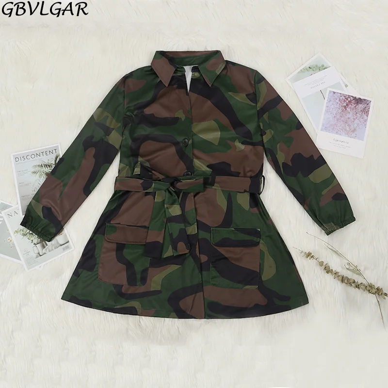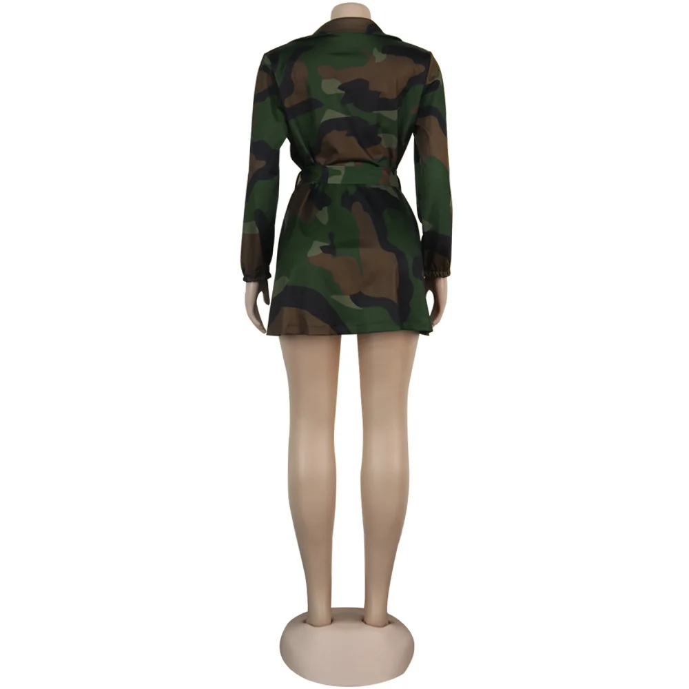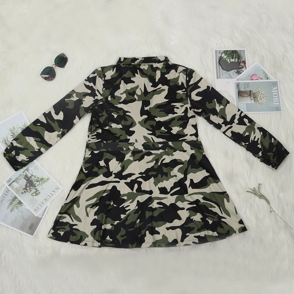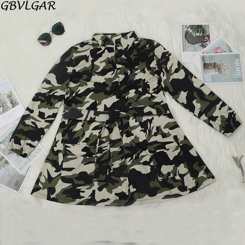 Женская уличная куртка с камуфляжным принтом, укороченная куртка с длинным рукавом и поясом, размера плюс, зима 2019