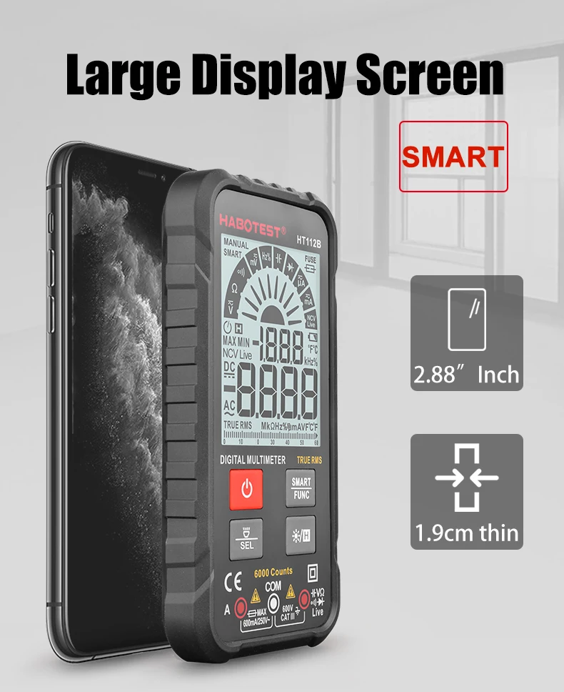 Цифровой мультиметр HABOTEST HT112B, тестер с автоматическим выбором диапазона, Электрический измеритель, транзисторный конденсатор, смарт-тестер