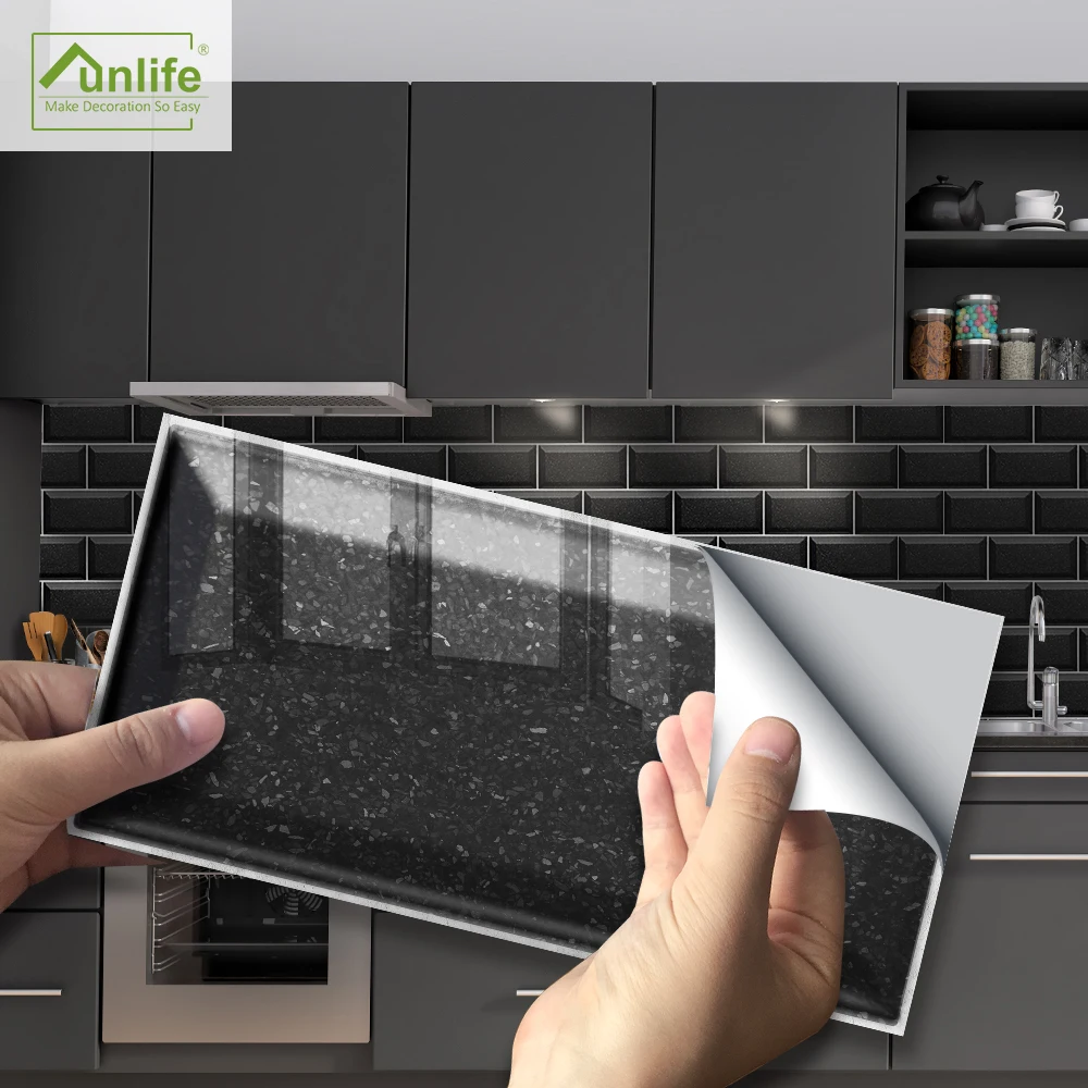 Funlife футболка20x10 см черный терраццо стикер стены DIY декоративный экологически чистый ПВХ плитка стикер s для ванной кухни дома стены пола