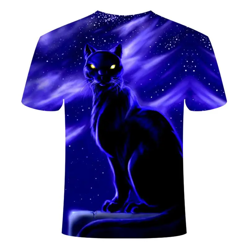 Женская футболка с коротким рукавом и синим ночным котом, 3d Футбол...