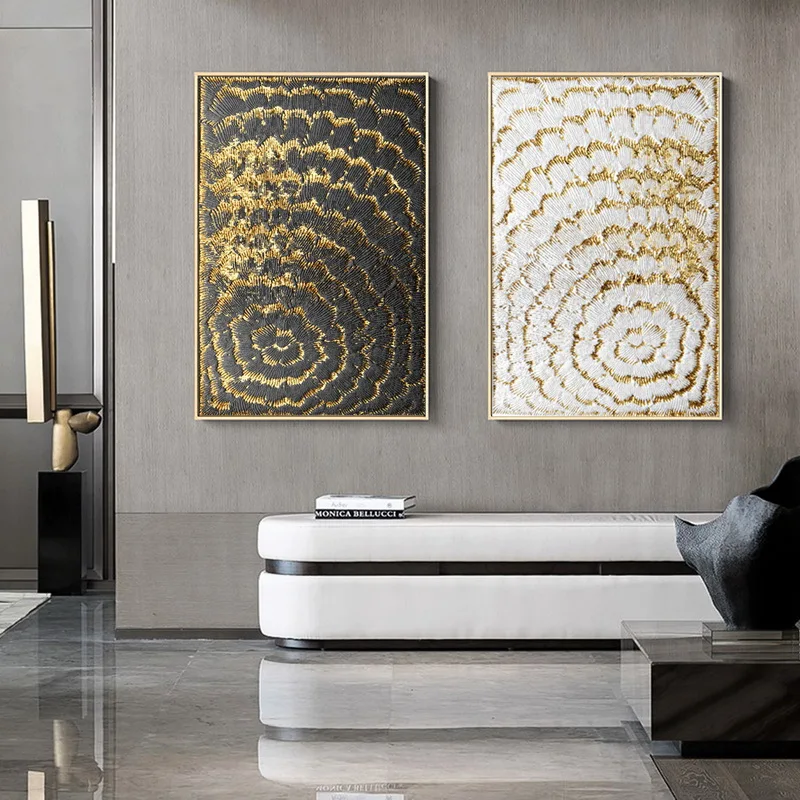 Абстрактный золотой цветок, цветочные листья, деньги, дерево, холст...