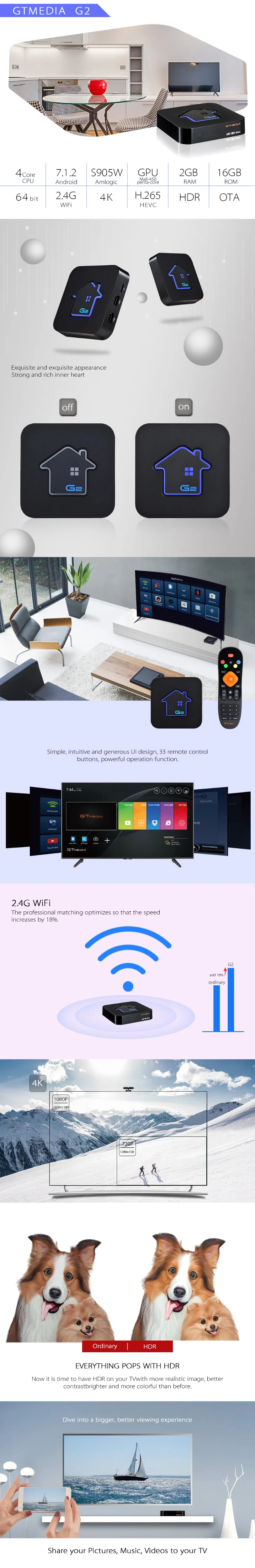 Оригинальный GTmedia G2 Smart tv Box 4K HD Android 7,1 Ultra HD 2G ...