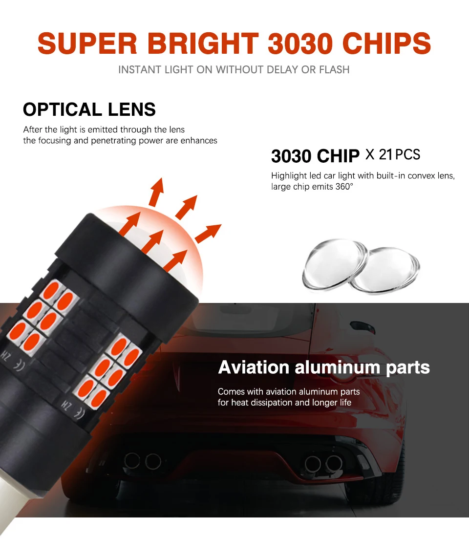 2шт Автомобильная сигнальная лампа 1156 P21W BA15S Led PY21W BAU15S лампа 1157 P21/5W BAY15D Canbus 12V 3030 21SMD поворотный боковой тормозной резервный светильник
