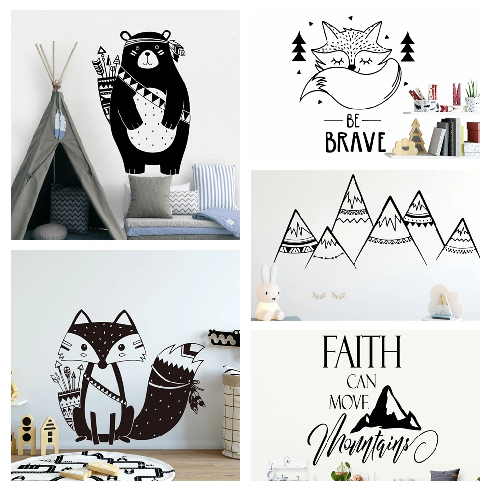 Наклейка на стену с изображением милой лисы, животных, наклейки для украшения детской комнаты, детские наклейки, наклейка для украшения комнаты