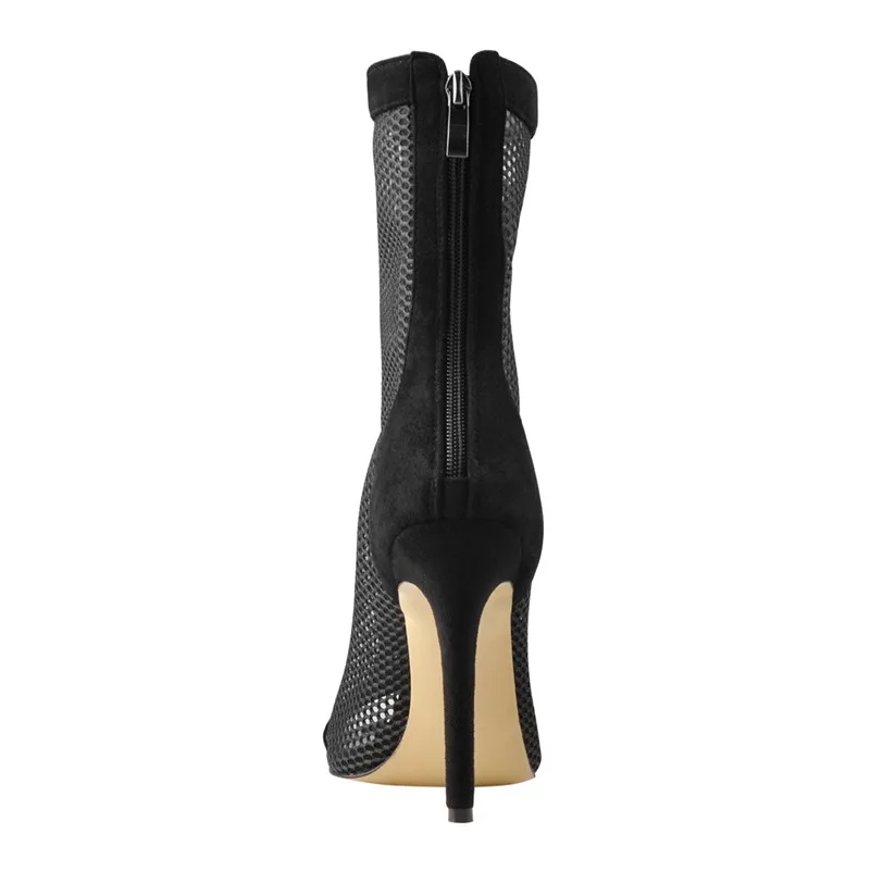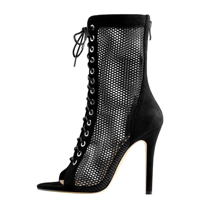 Onlymakerженские черные сетчатые сандалии до середины икры с открытым носком на шнуровке, с вырезами, с открытым носком, на молнии сзади, на шпильке