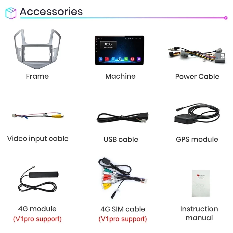 1. Штифт-штифт: Кабель питания Junsun radio' является штифтом для штифта, прост в установке;2. Встроенный Carplay/ Android Auto: Поддержка версии V1Pro, просто используйте кабель телефона, подключите его, стабильный и простой в использовании; (V1 поддерживает только Android Auto, но нужно покупать; V1C не поддерживает)3. Поддержка подголовника: только поддержка версии Junsun V1;