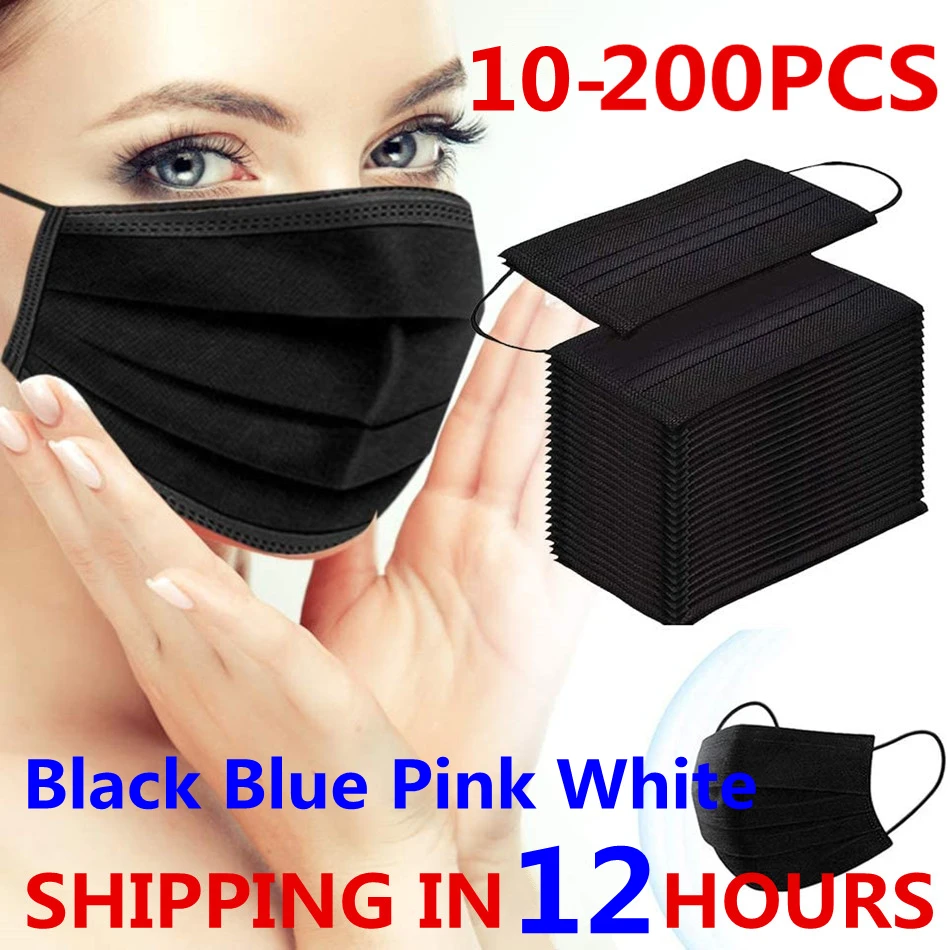 10-200 шт. маска одноразовая маска для лица Черный Nonwove 3 Слои м...
