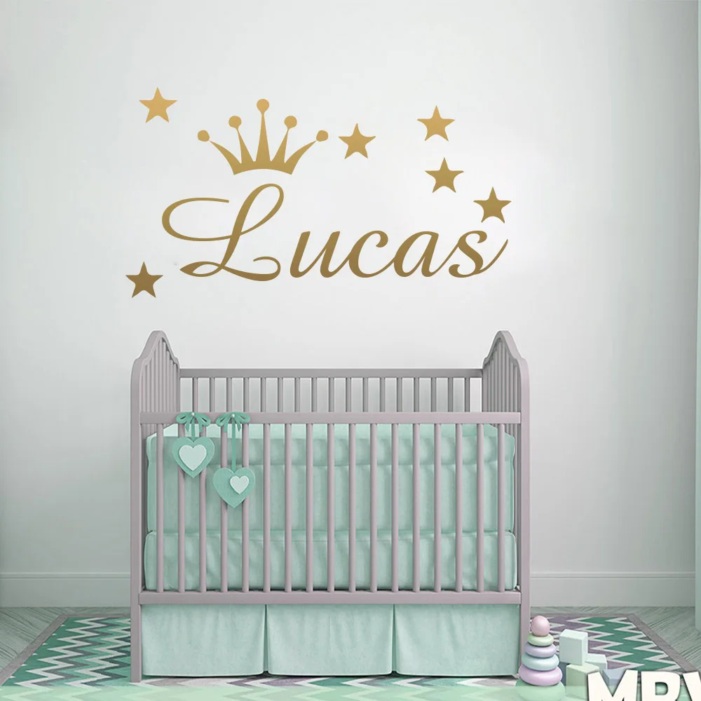 Персонализированные настенные наклейки с именем короны для детских комнат, декоративные наклейки, виниловые настенные наклейки с именем для малышей