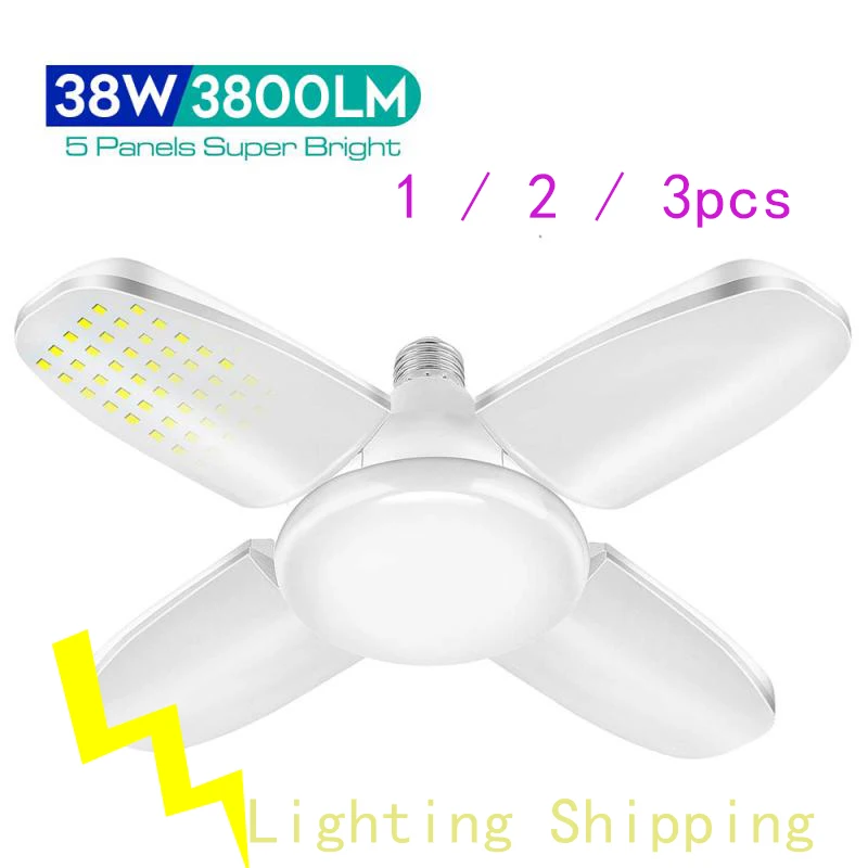 Энергосберегающие светодиодные лампы для гаража, освещение для магазина, работы, склада, профессиональные потолочные светильники, Мини Складные светодиодные лампы с вентилятором и лезвием, 38 Вт