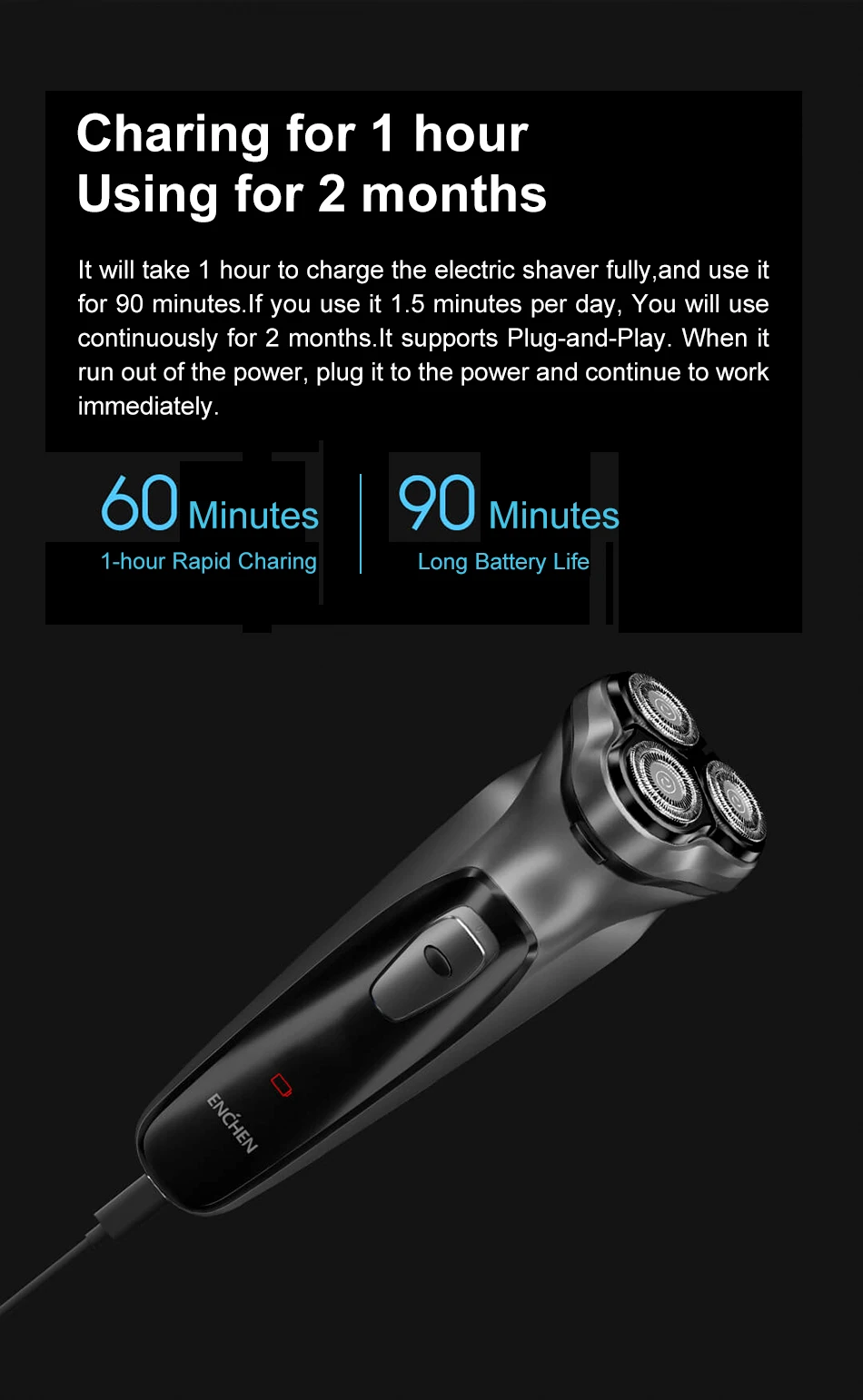 Бренд: ENCHEN Материал: Нержавеющая сталь + АБС-пластик Время зарядки: 60 минут Время работы: 90 минут Номинальная Мощность: 5 Вт Номинальная Напряжение: 5V Цвет: серебристый/черный Чистая Вес: 139 г Размеры: 155x53 мм/6,10 "x 2,09" Метод зарядки: зарядка через USB
